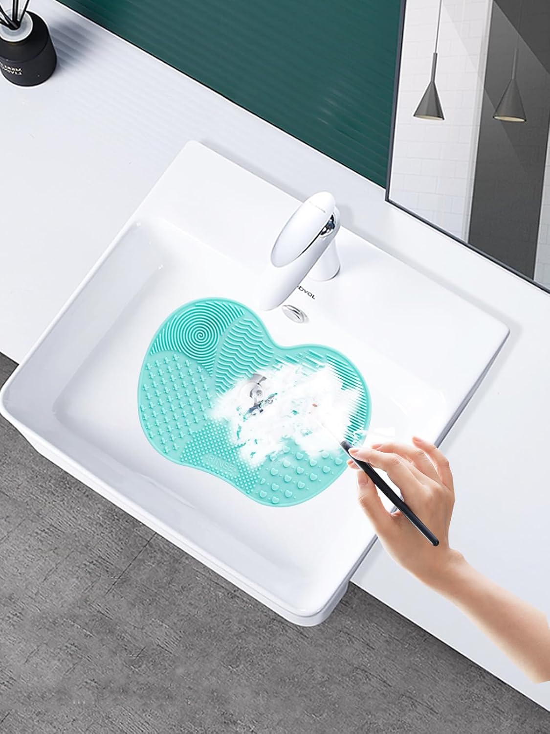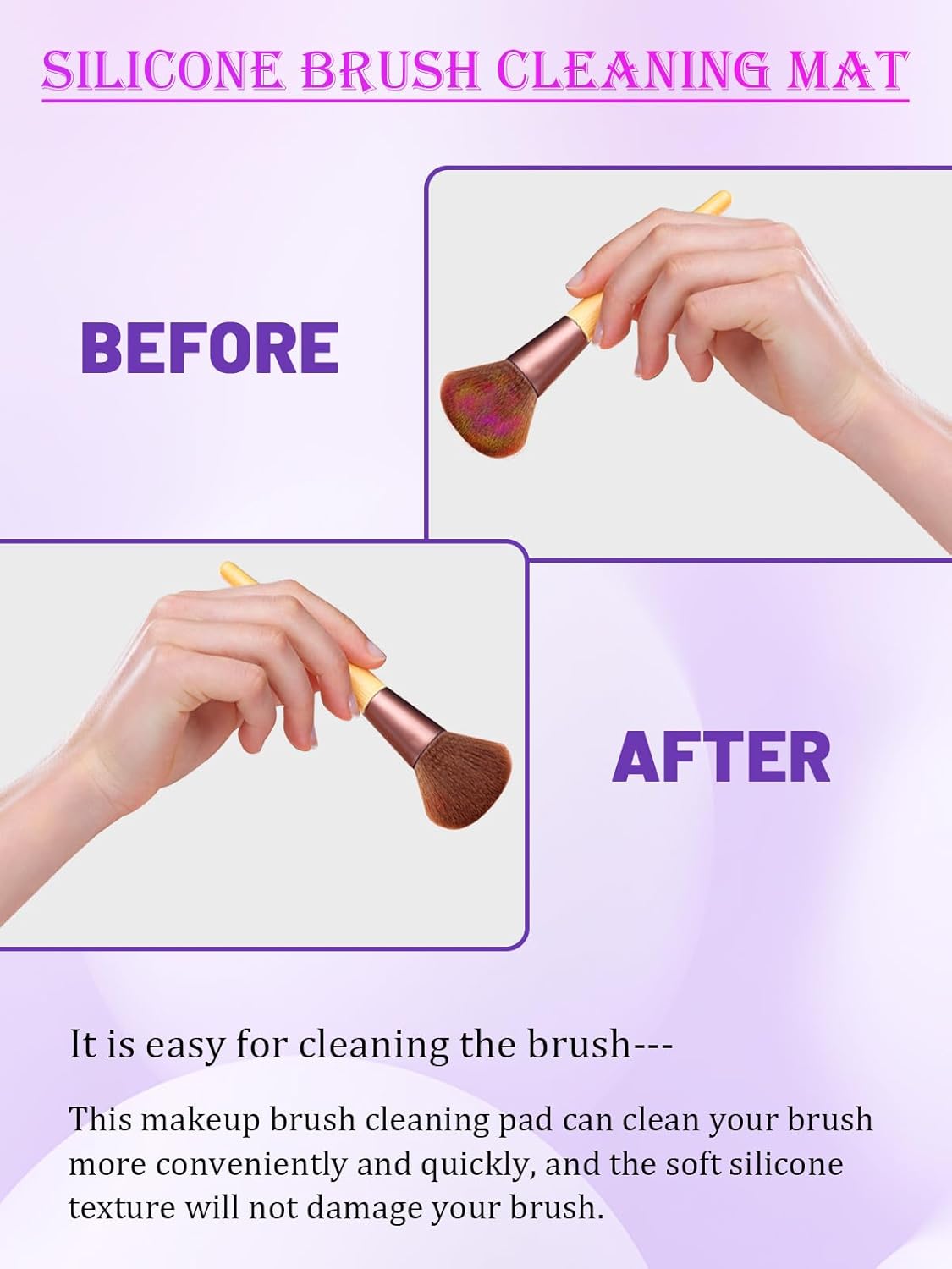 The surface of the makeup brush cleaning pad is designed with different kinds of threads, which can clean the brushes thoroughly. Just pour some cleaning solution on the cleaning pad, move the brush over the cleaning pad and start washing.