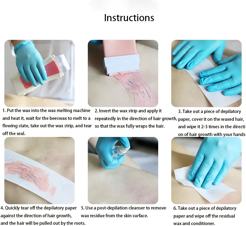 4: Because the growth direction of the bristles is very chaotic, it must be coated with the hair growth direction, width 1CM. Stick the hair removal cloth, so that it will be peeled open in the direction of rapid hair growth after 1 minute.