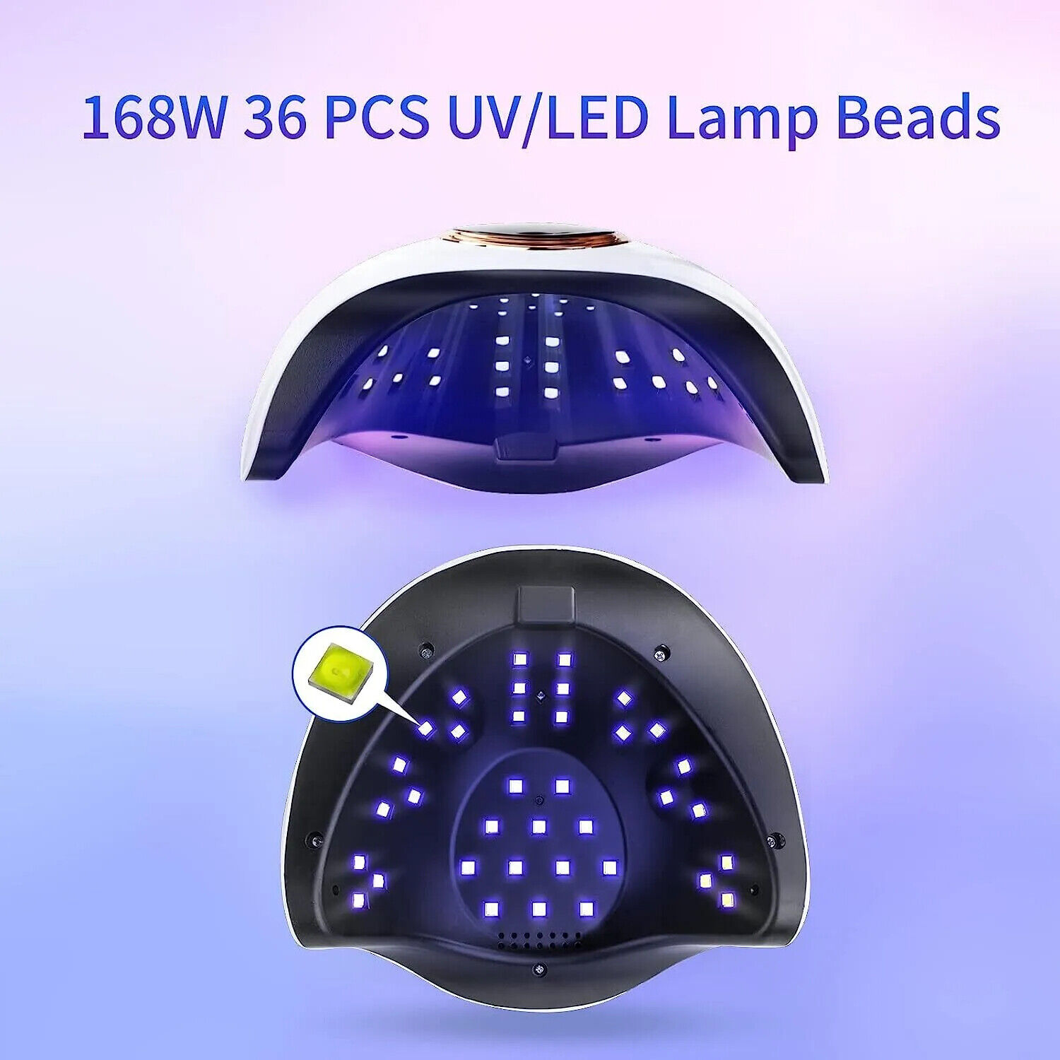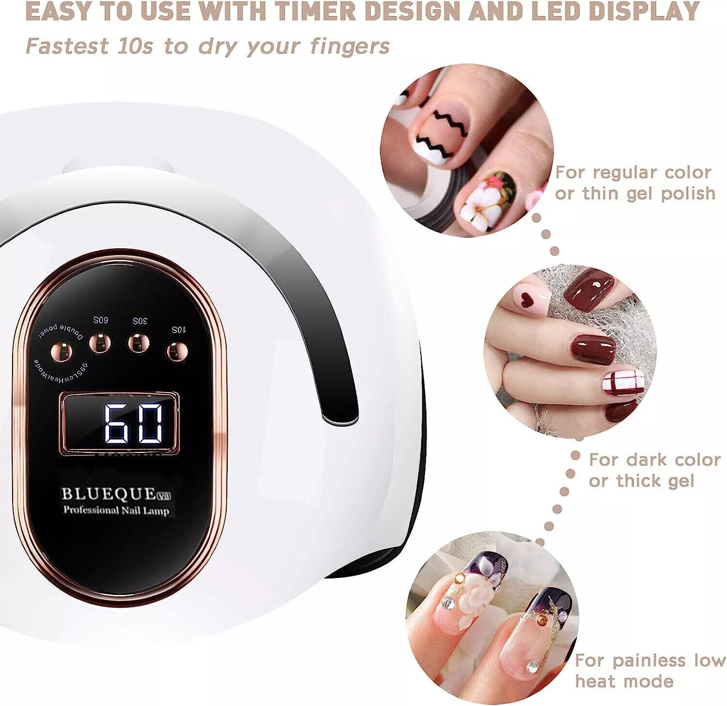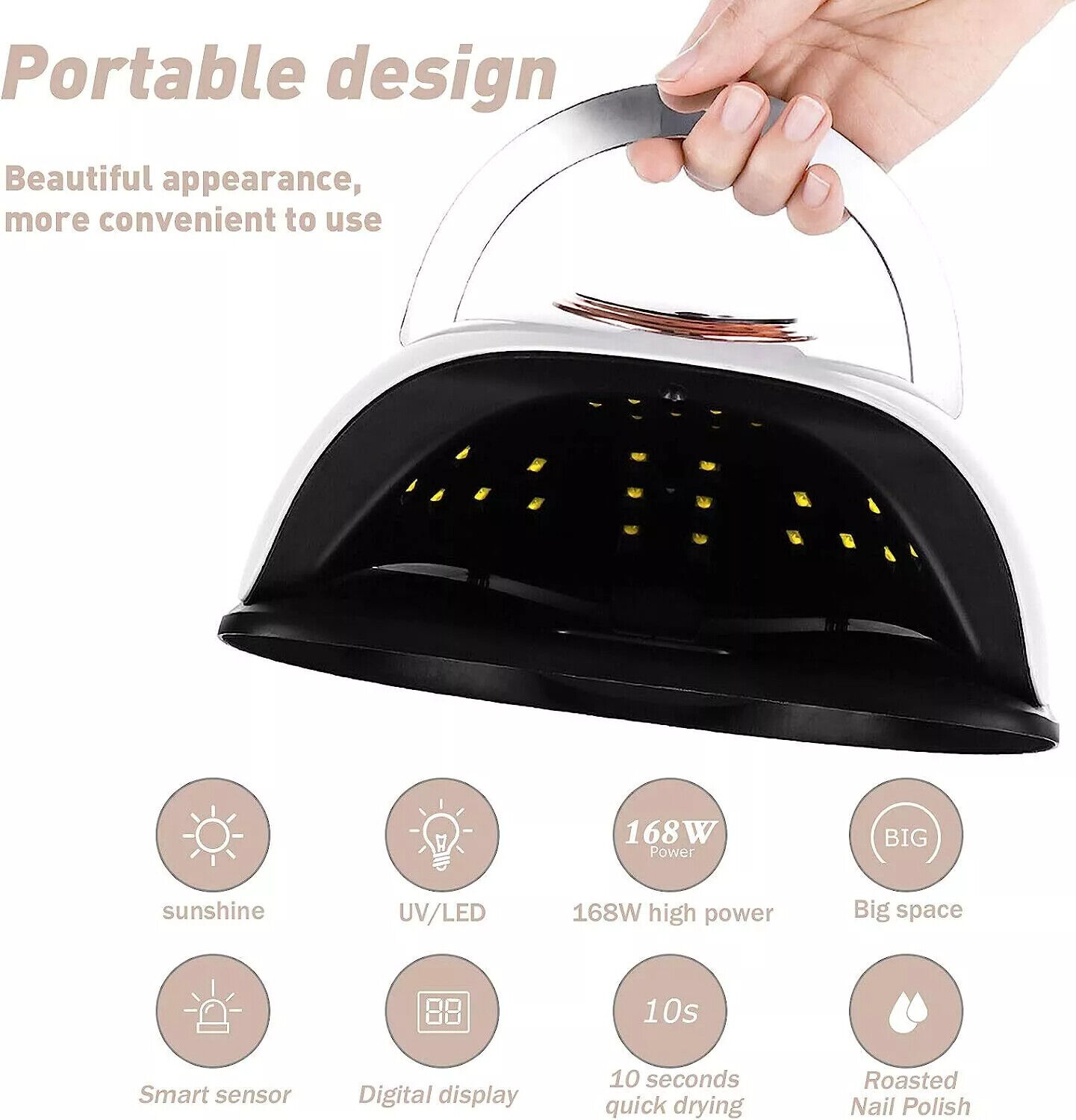 1. HIGH DOUBLE POWER TO SAVE CURING TIME: 168w UV led gel nail dryer offers cure speeds up to twice as fast as standard led UV gel nail lamp. Easy work for extra hard gel and high efficient curing your gel nails.