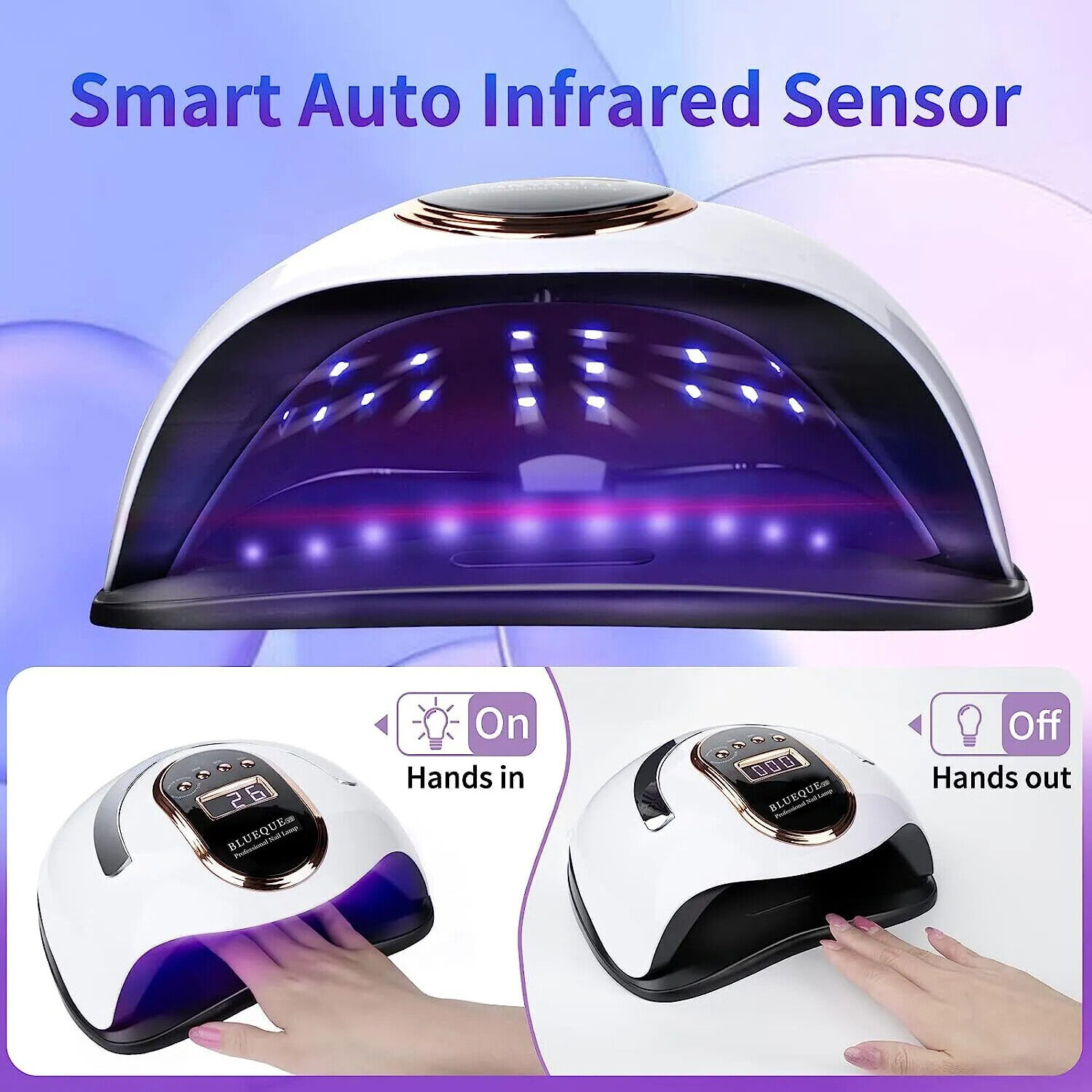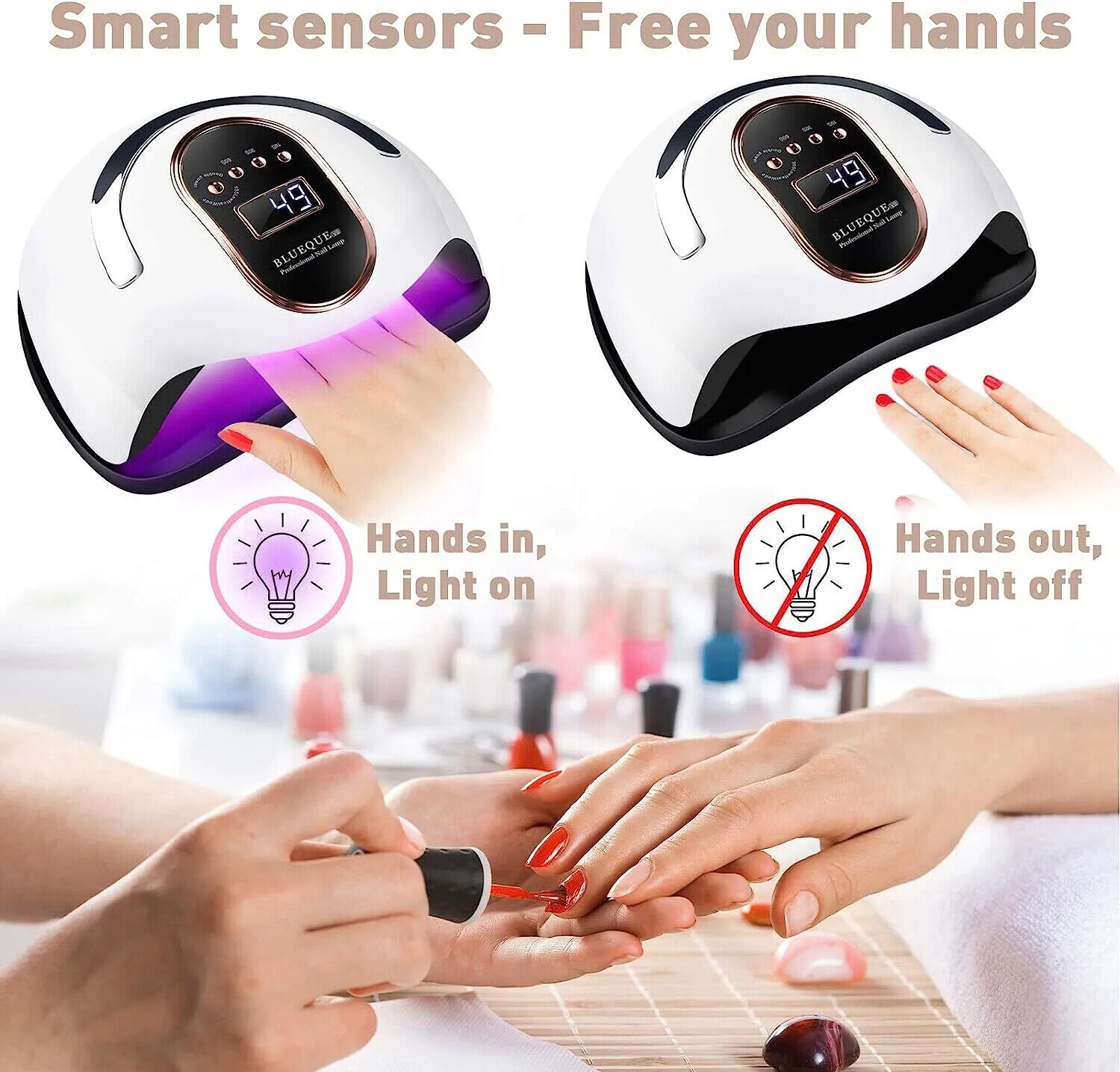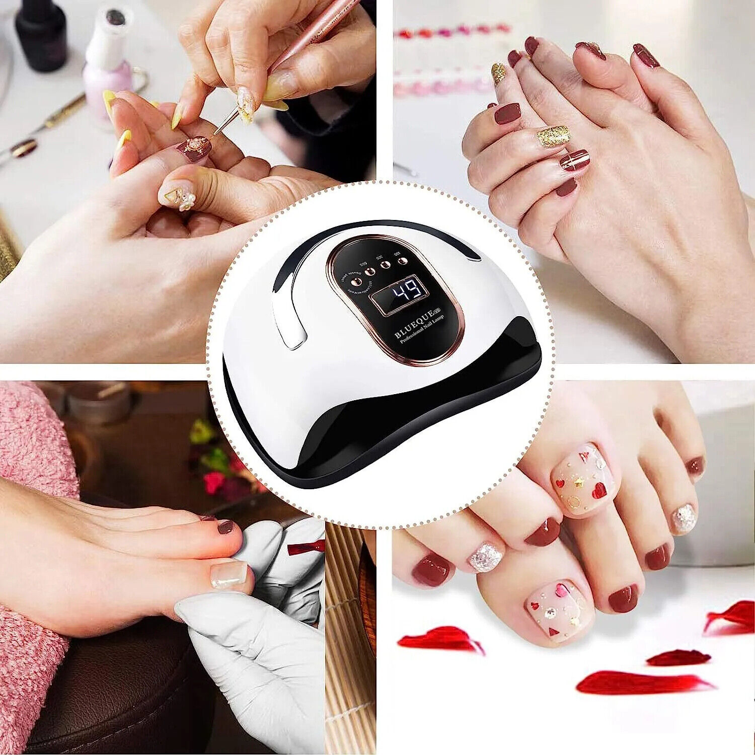 1. HIGH DOUBLE POWER TO SAVE CURING TIME: 168w UV led gel nail dryer offers cure speeds up to twice as fast as standard led UV gel nail lamp. Easy work for extra hard gel and high efficient curing your gel nails.