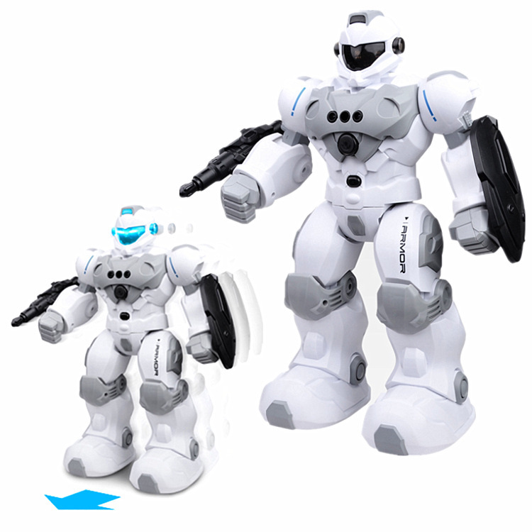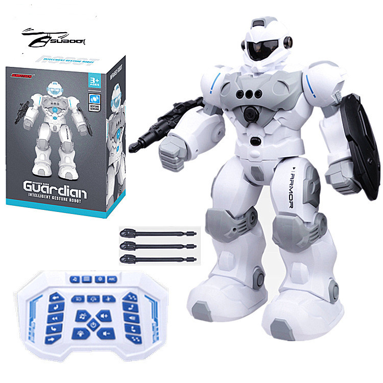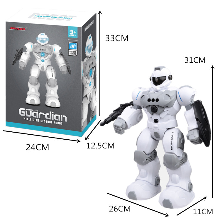 Packing configuration: robot, remote control, removable ejection gun and shield, bullet x3,