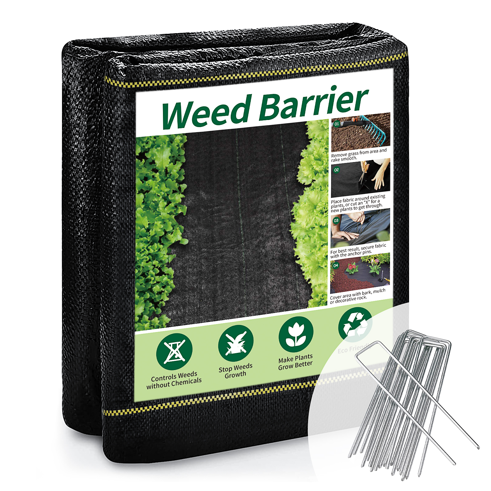 Easy Installation: Installing the weed barrier is easy and straightforward, requiring no special tools or equipment. All you have to do is lay it down over the area that you want to protect from weeds, and use our landscape staples to secure it in place. This ensures that it stays in place and continues to provide effective weed control