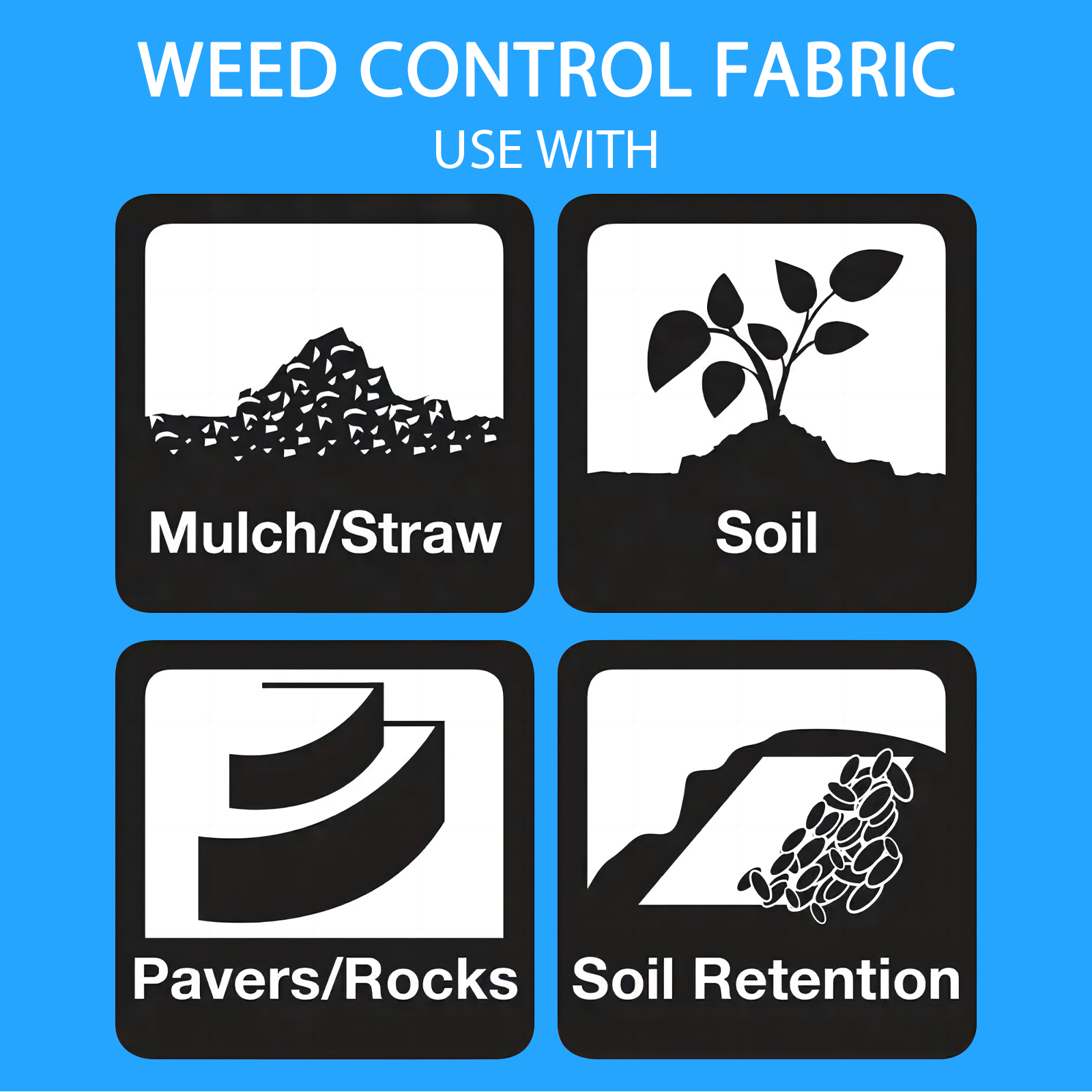 Multiple Applications: The weed barrier is incredibly versatile and can be used in a variety of applications. It's ideal for use under mulch, rock, or gravel paths, in vegetable gardens, or around trees and shrubs. Additionally, it helps to prevent soil erosion and promotes soil moisture retention, making it a useful addition to any garden or landscaping project.