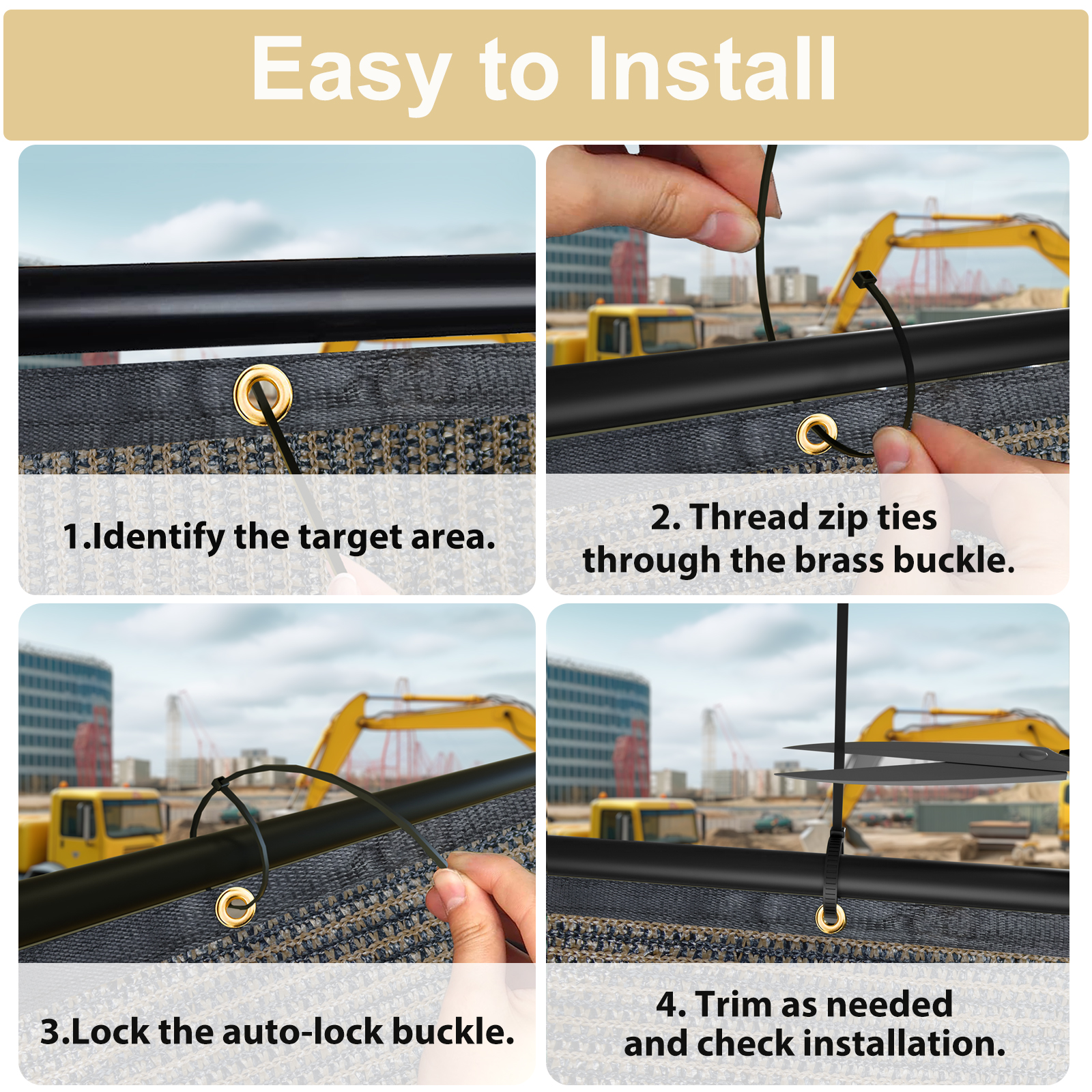 Easy To Installing:Privacy mesh screen is incredibly simple; just use the included zipper to secure the grommets on both sides of the fence; ensuring a snug fit against the fence and effortless enhancement of privacy
