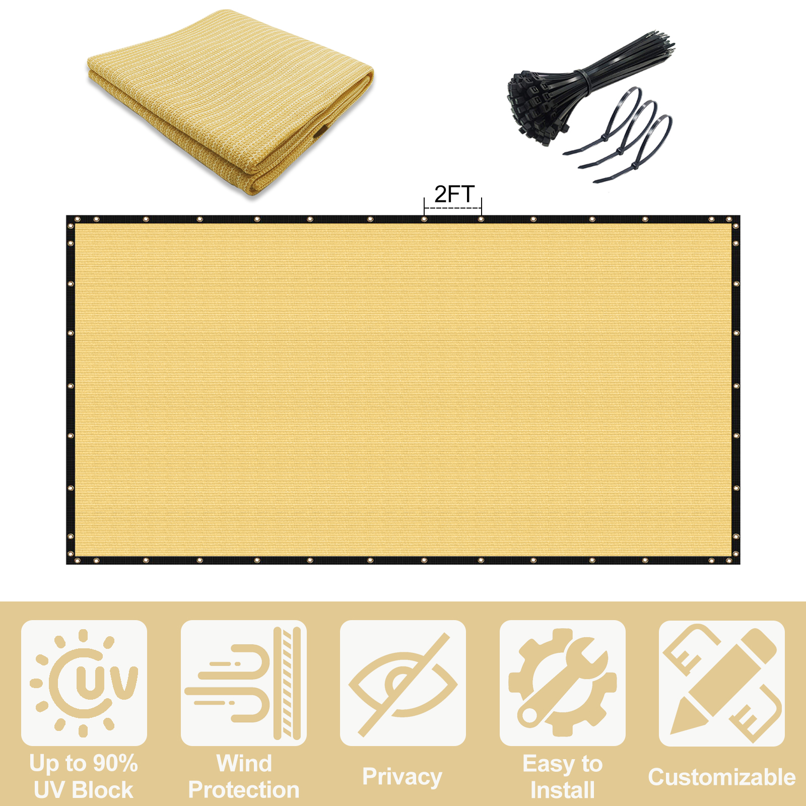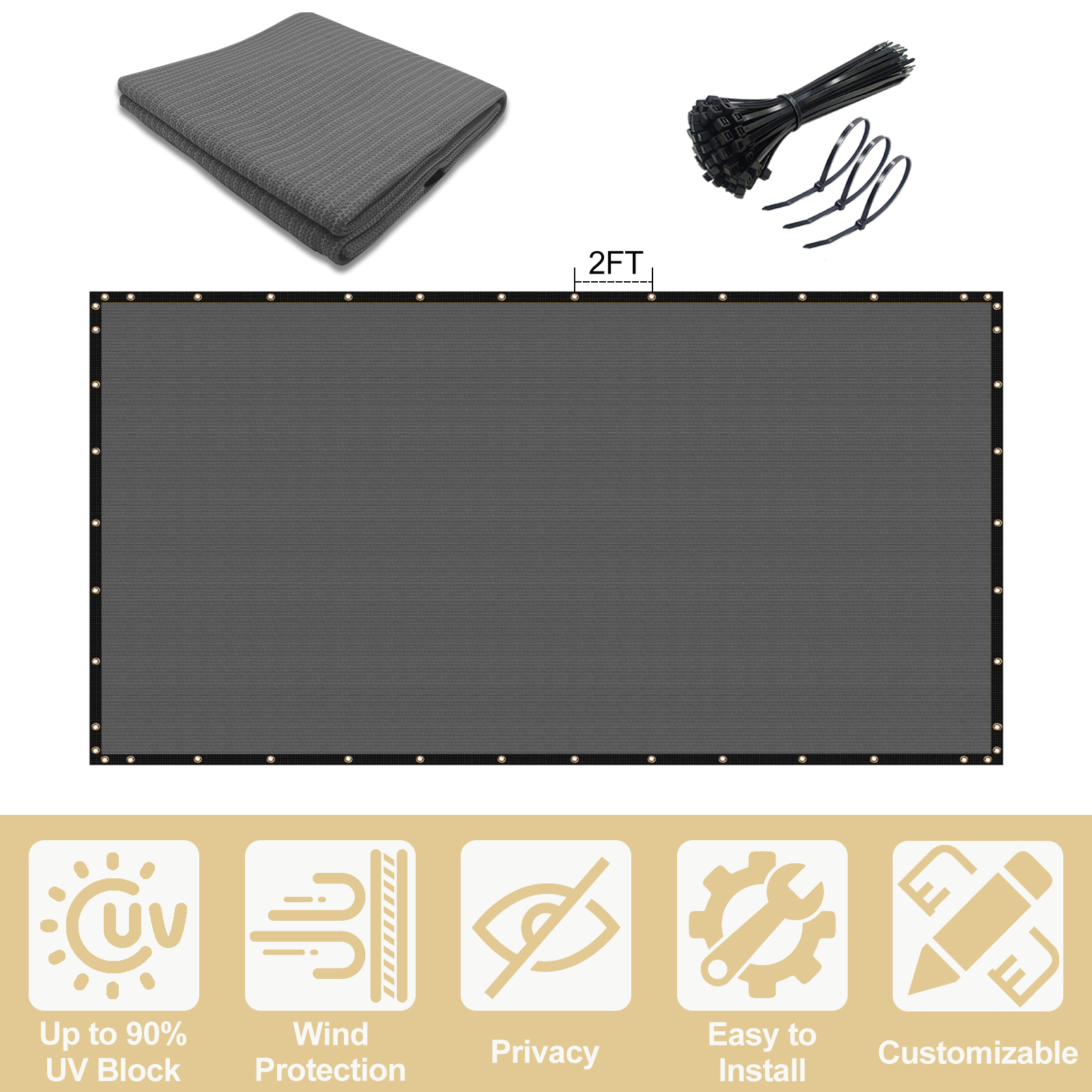 Durable: fence screens are made from sun-resistant 170 GSM HDPE fabric; Each side is equipped with brass grommets for secure fastening; Our privacy fence for patio offer a variety of sizes and colors to fully meet your needs