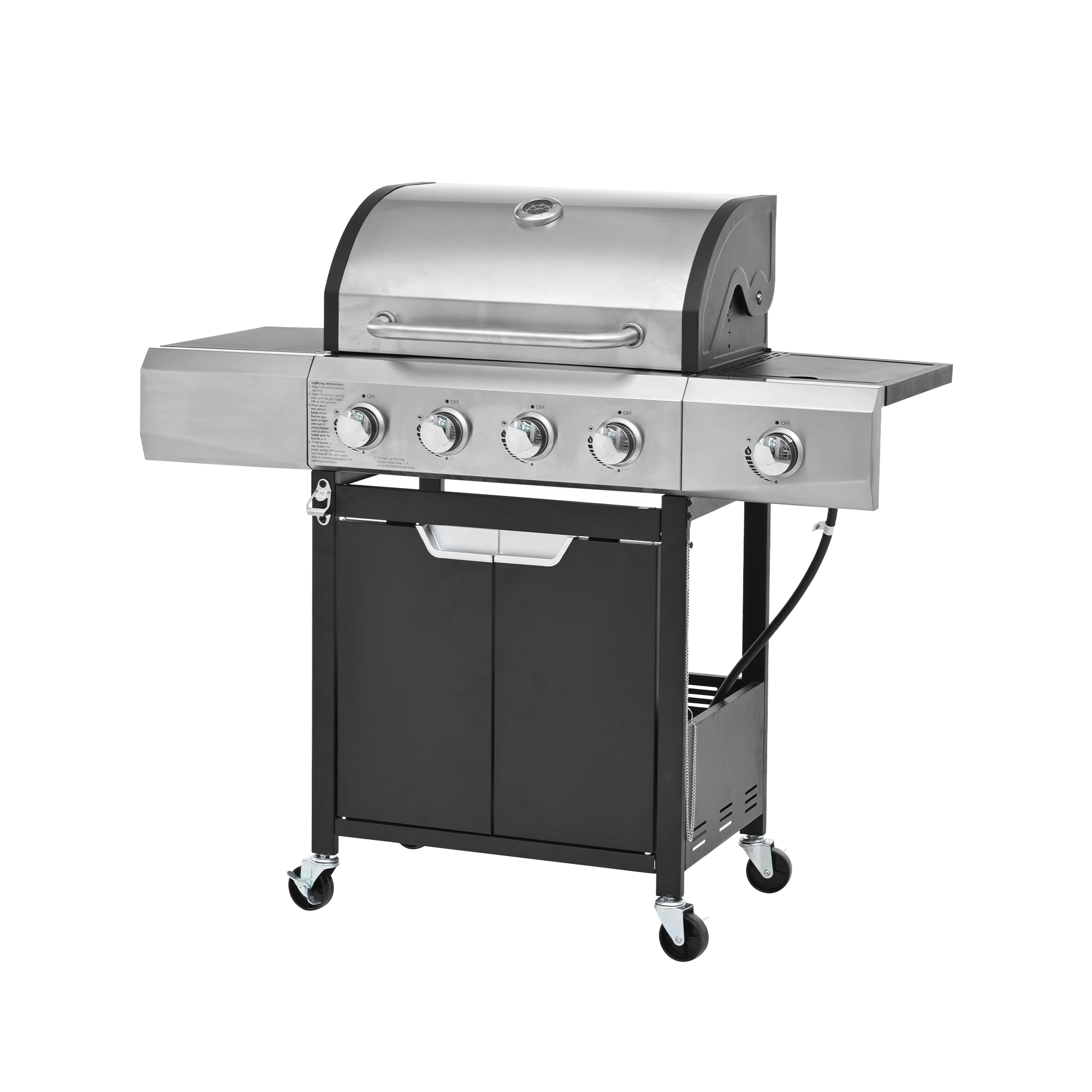 • High-powered Burners: This stainless steel gas grill has 4 main burners (10,500 BTU each) and a side burner (9,000 BTU). 4 burners deliver a total of 51,000 BTU cooking power.