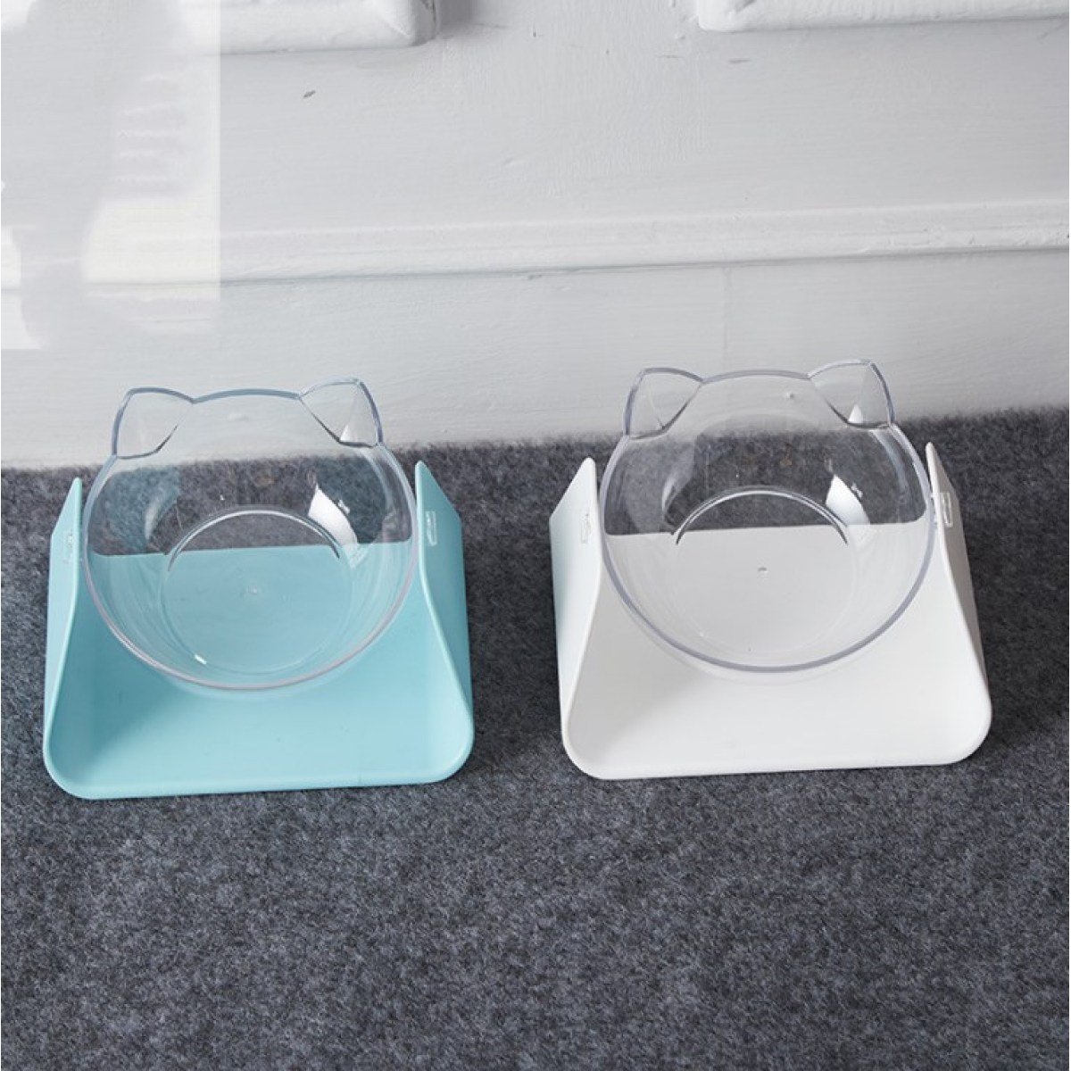 • Blue beveled cat bowl