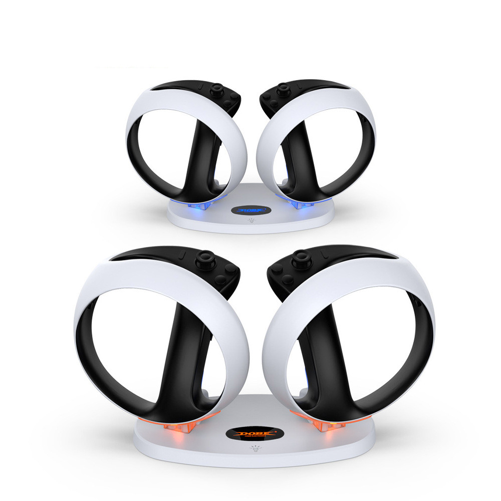 This product is a VR2 handle charging stand developed and designed specifically for PSVR2 handles. This product is equipped with a high-precision microprocessor chip control circuit. When the left and right handles are charged, different charging states are displayed through different lights