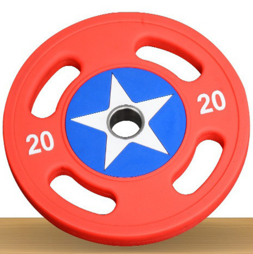 Product name: barbell sliceMaterial: CPU+ iron core.Color: red + white + blueAperture: 5 cm