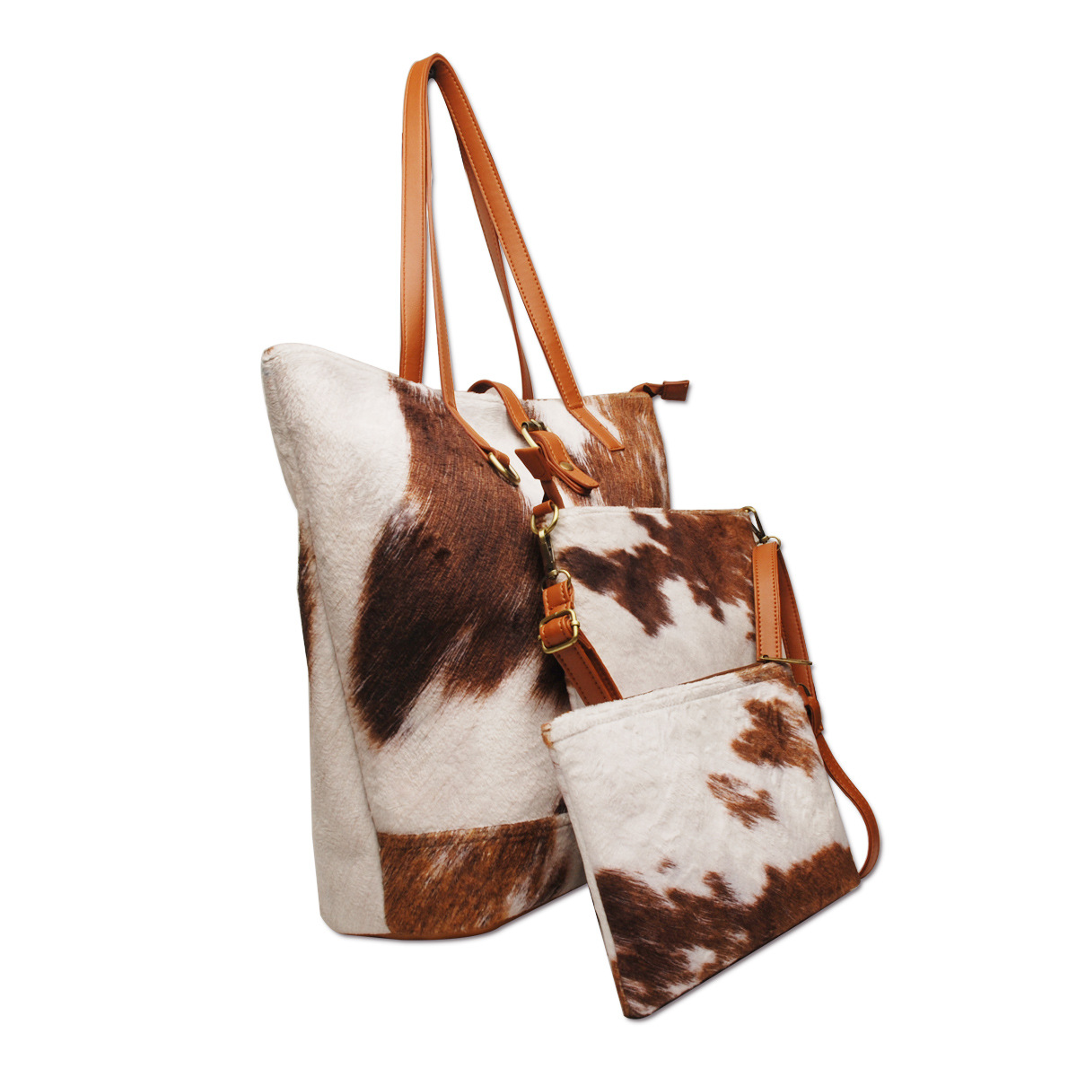 PU Cotton Plush Super Soft Cow Pattern Three-piece Set