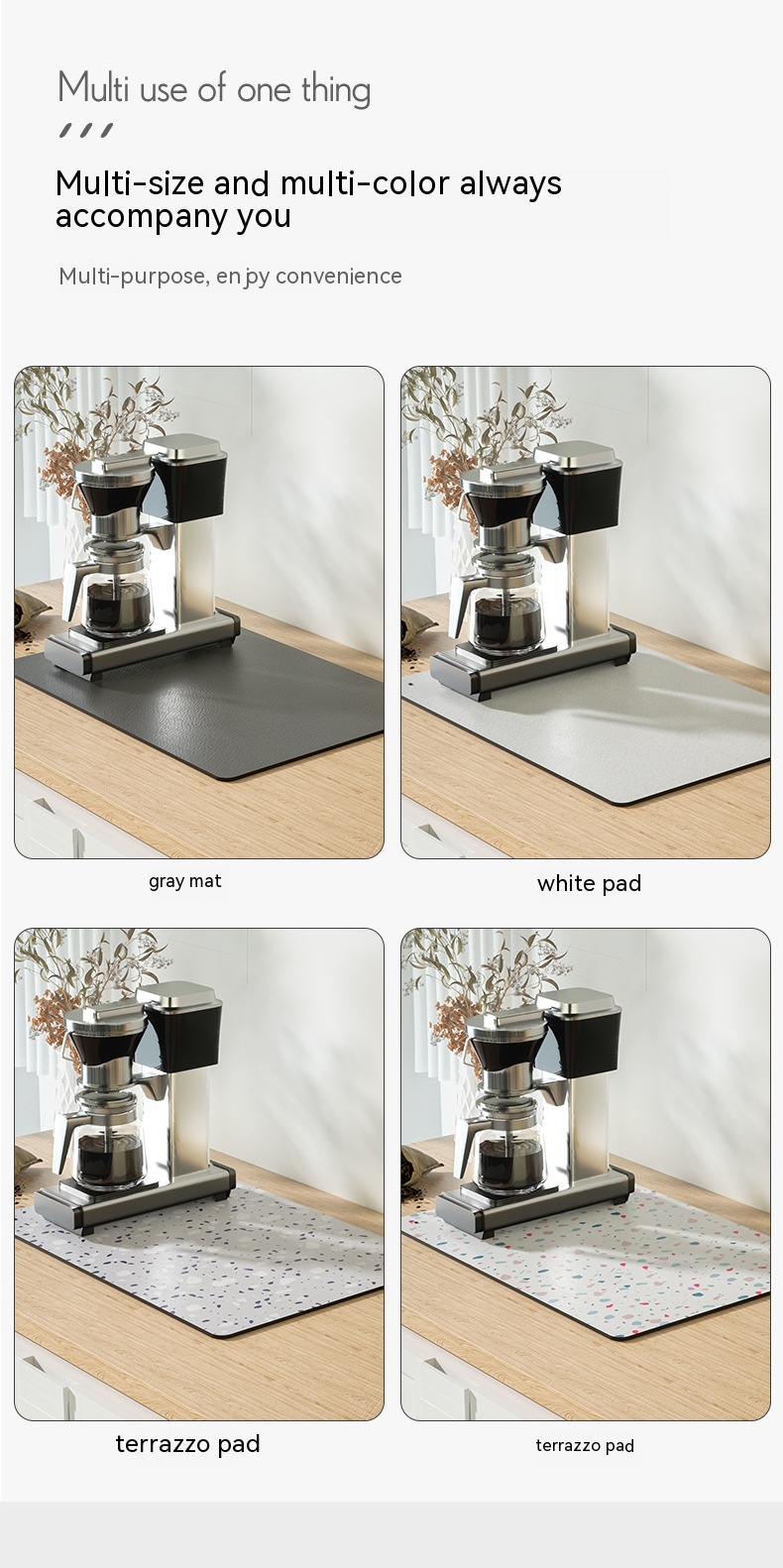 Color: dark gray, white, navy blue, black, medium gray, light gray, cream, color terrazzo, blue gray terrazzo, cream Cherry, green flower squares, blue playful squares, yellow flowers, Camellia, blooming flowers, linen coffee, customizable size pattern logo