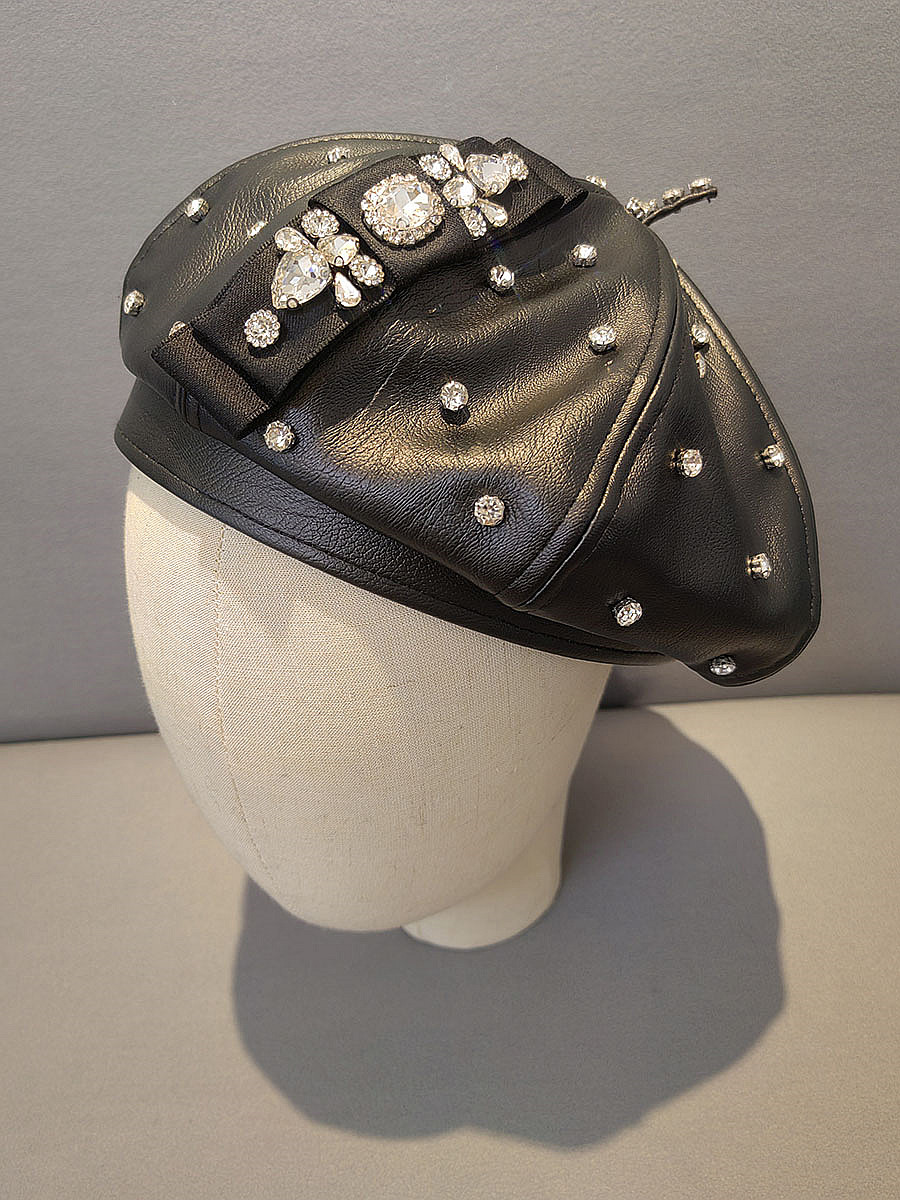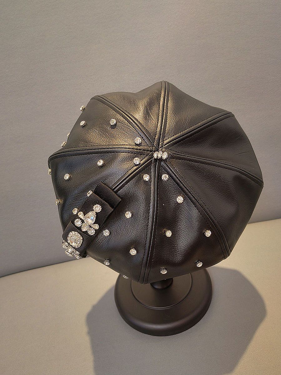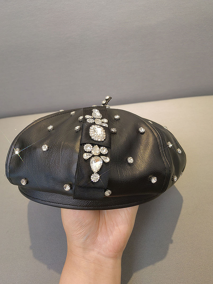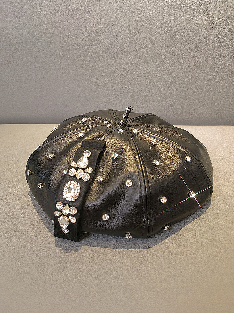 Korean-style rhinestone pu beret