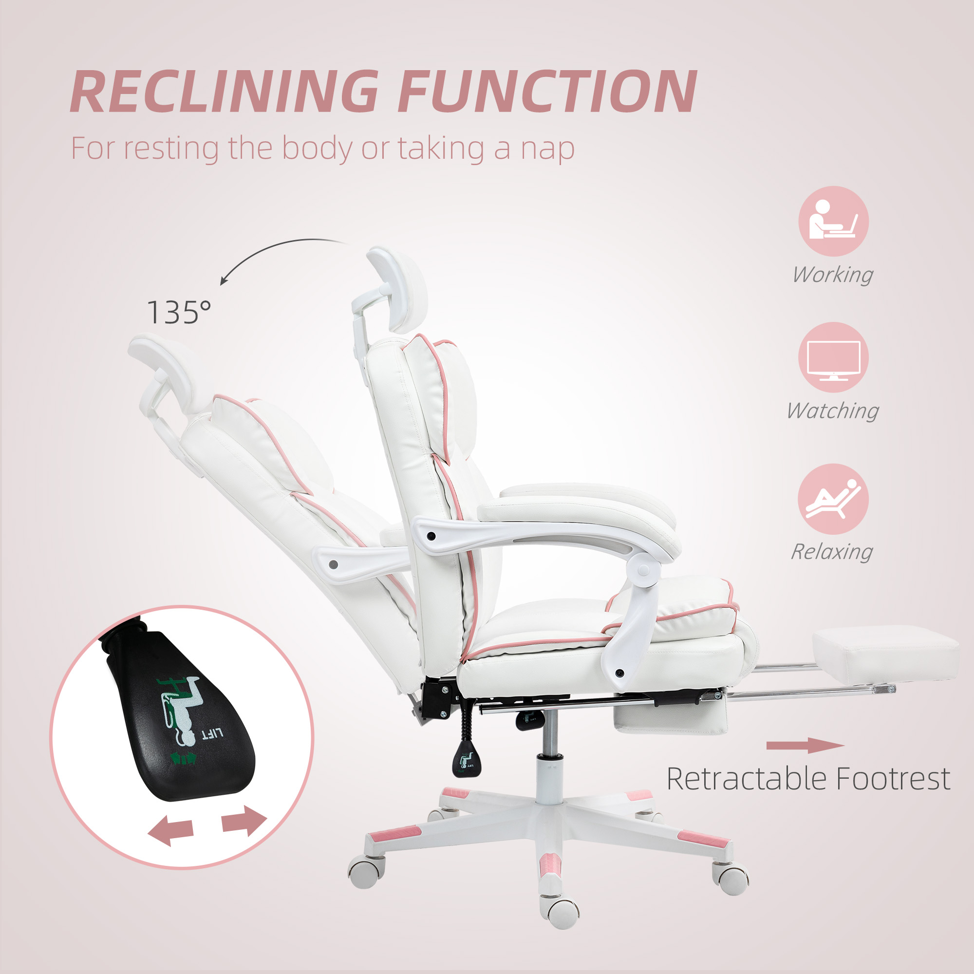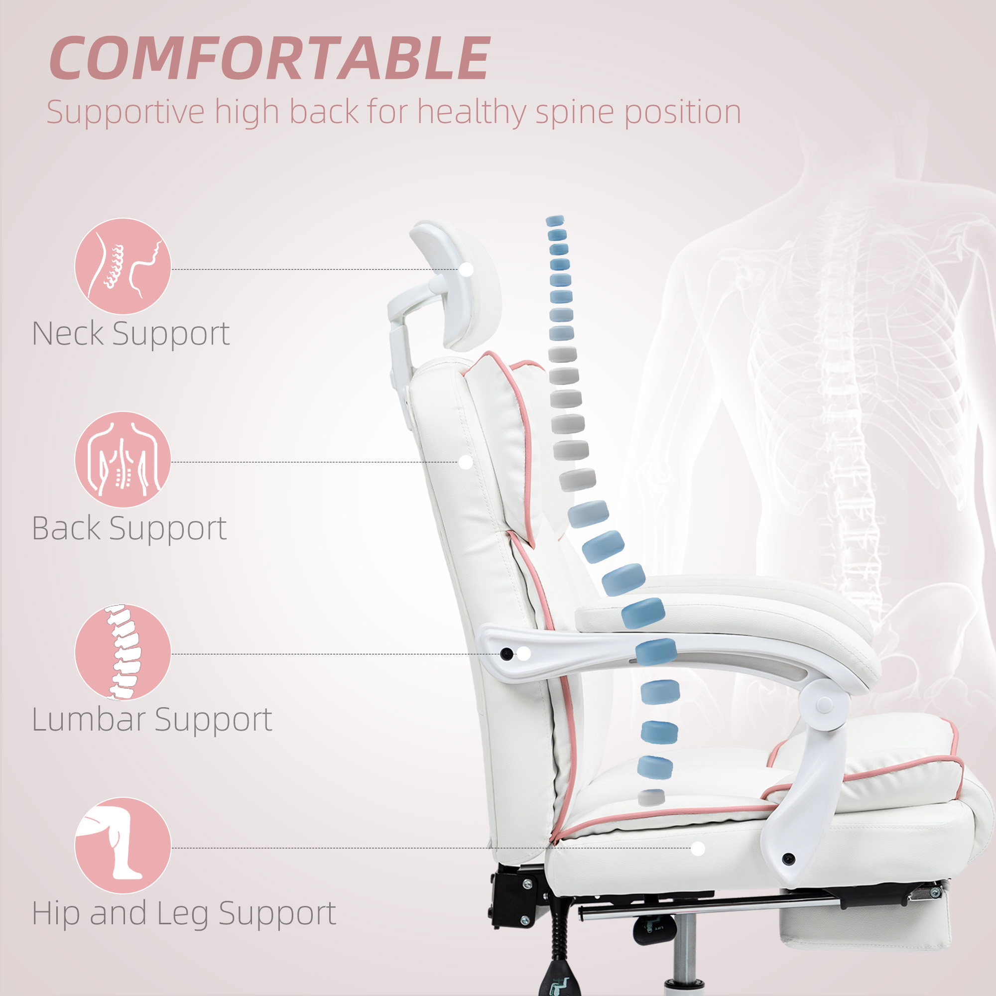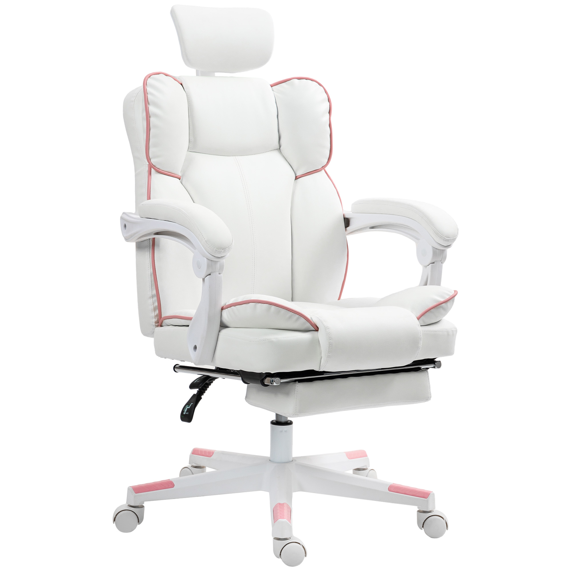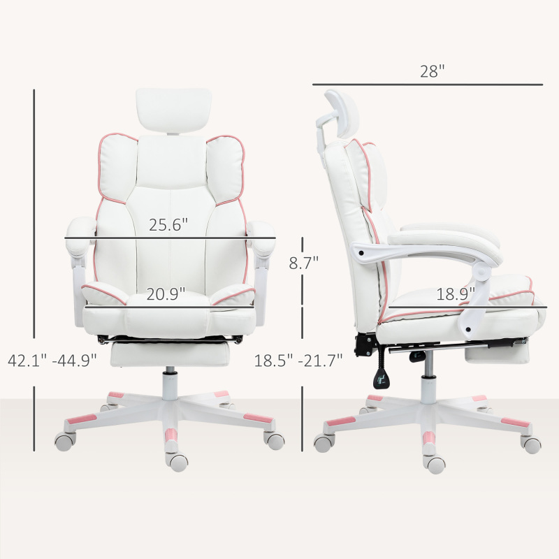 PU Leather Office Chair, Executive Desk Chair With Headrest, Foot Rest, Swivel Wheels, Reclining Computer Chair, White