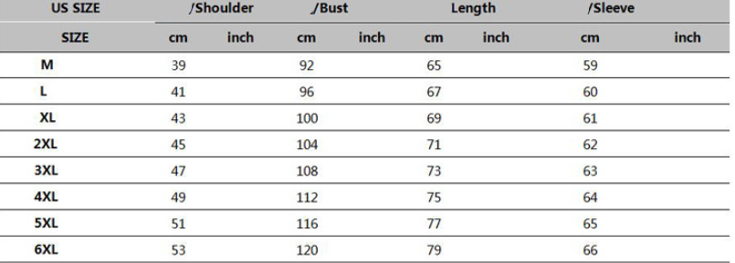 Size: M,L,XL,2XL,3XL,4xl=European code XL,5xl=European code 2XL,6xl=European code 3XL