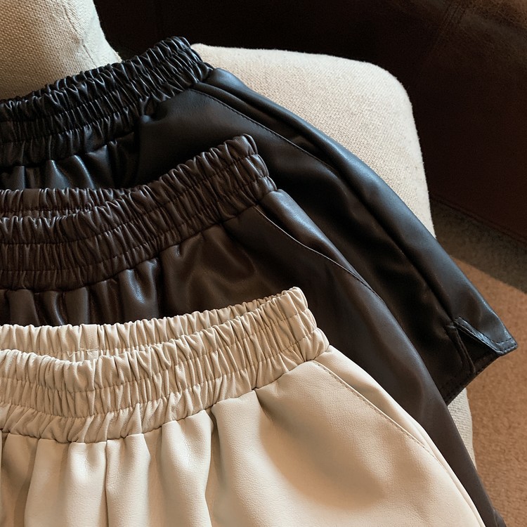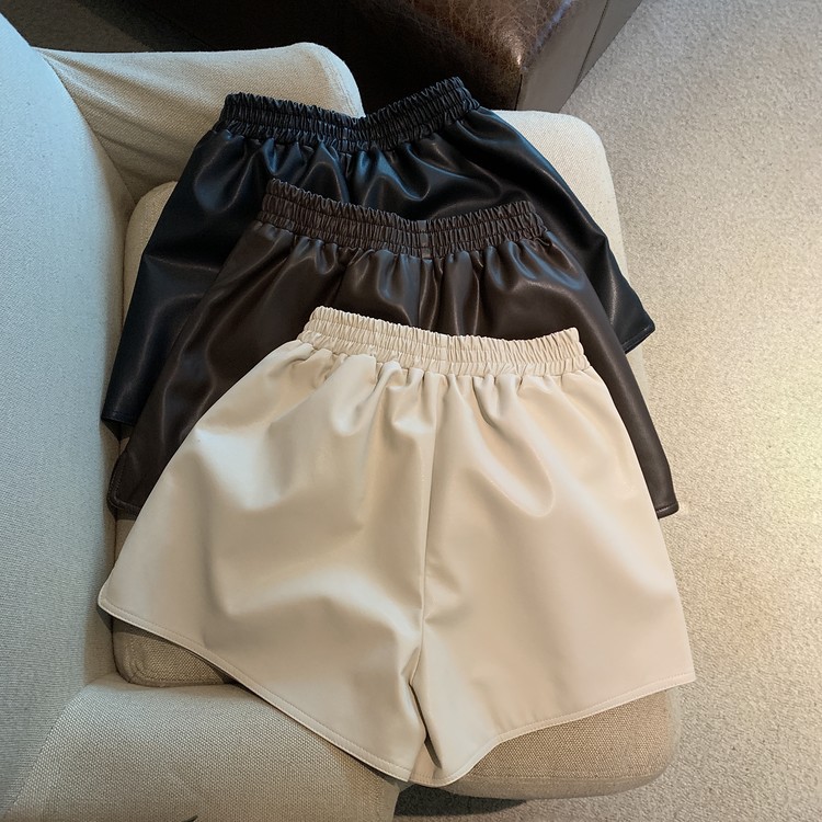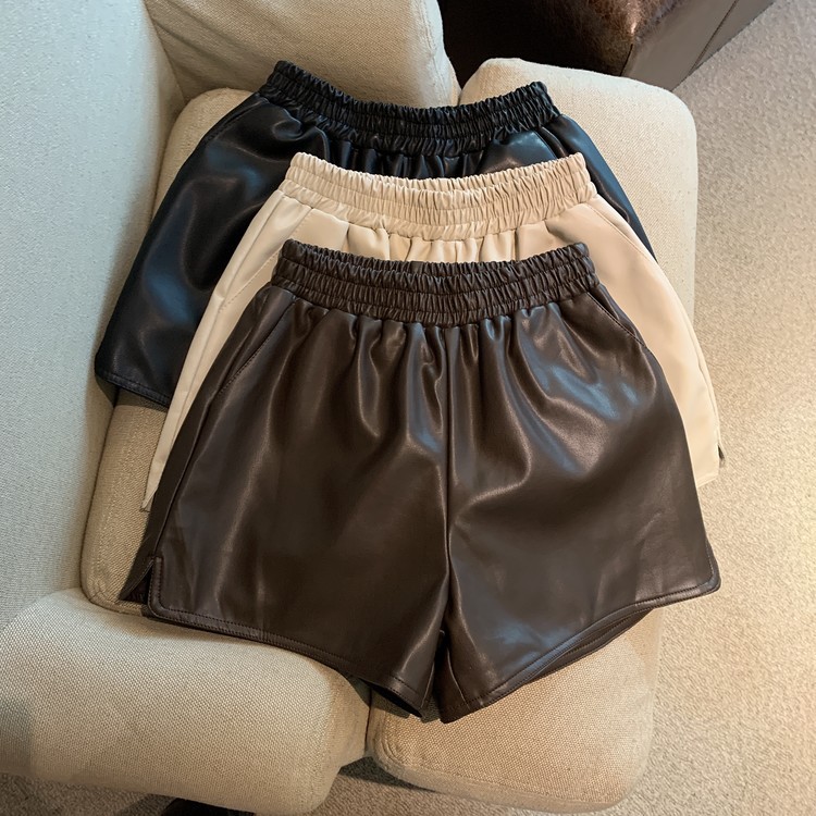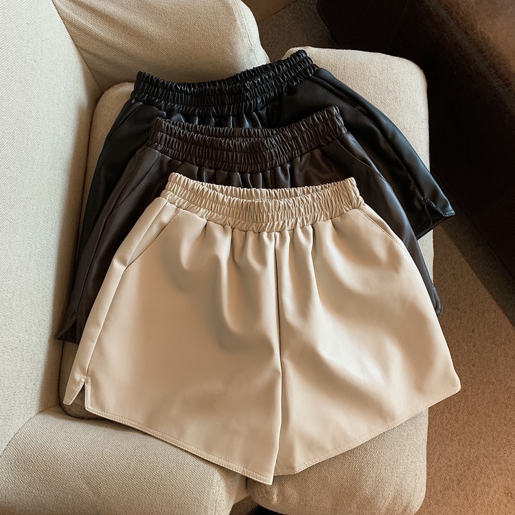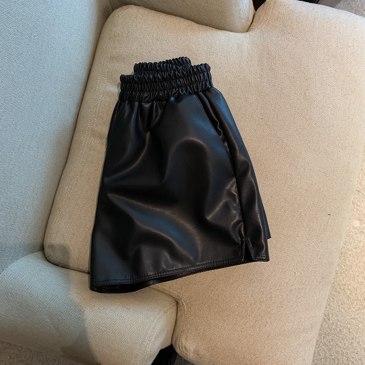 Pu Leather Shorts Women High Waist Loose Split Casual Pants