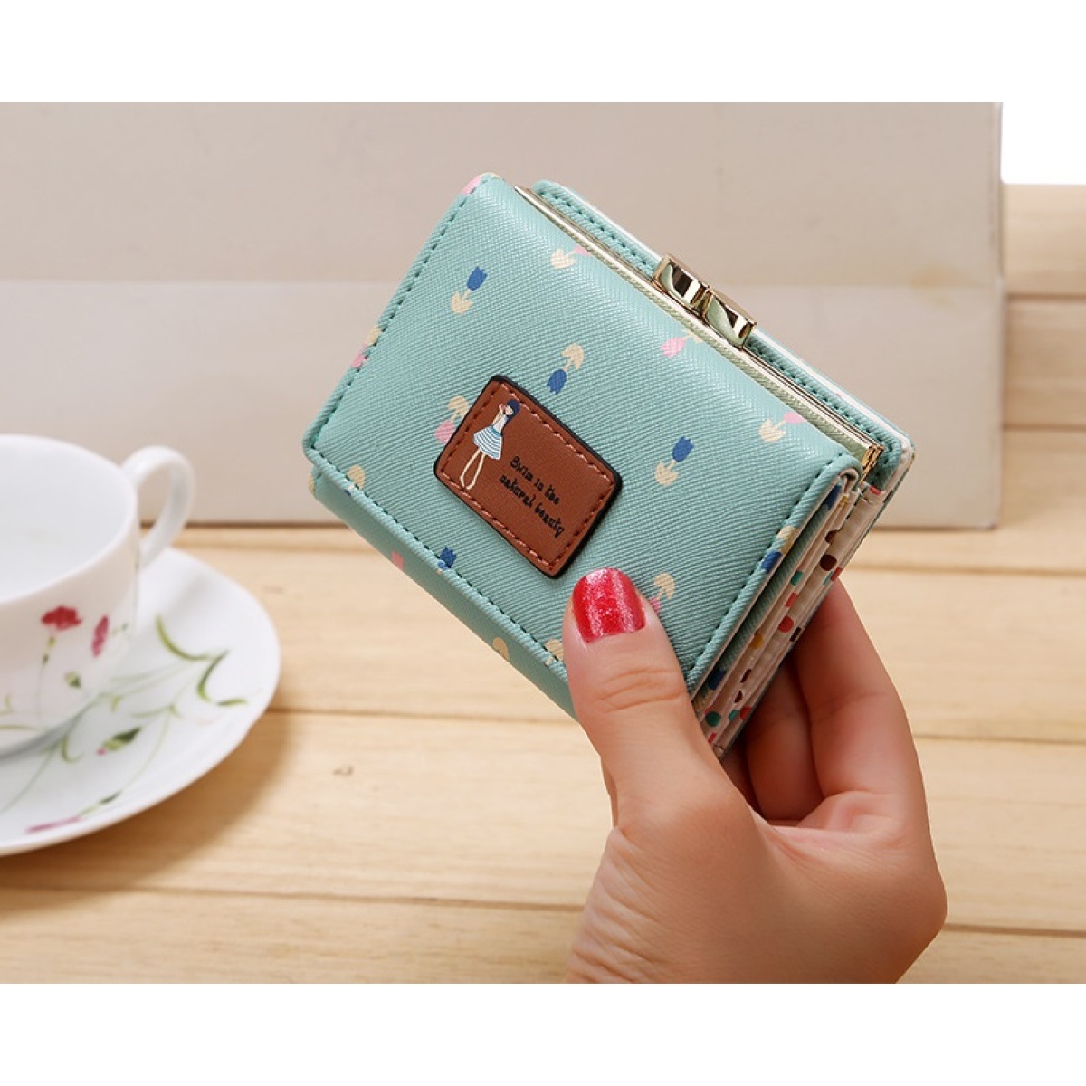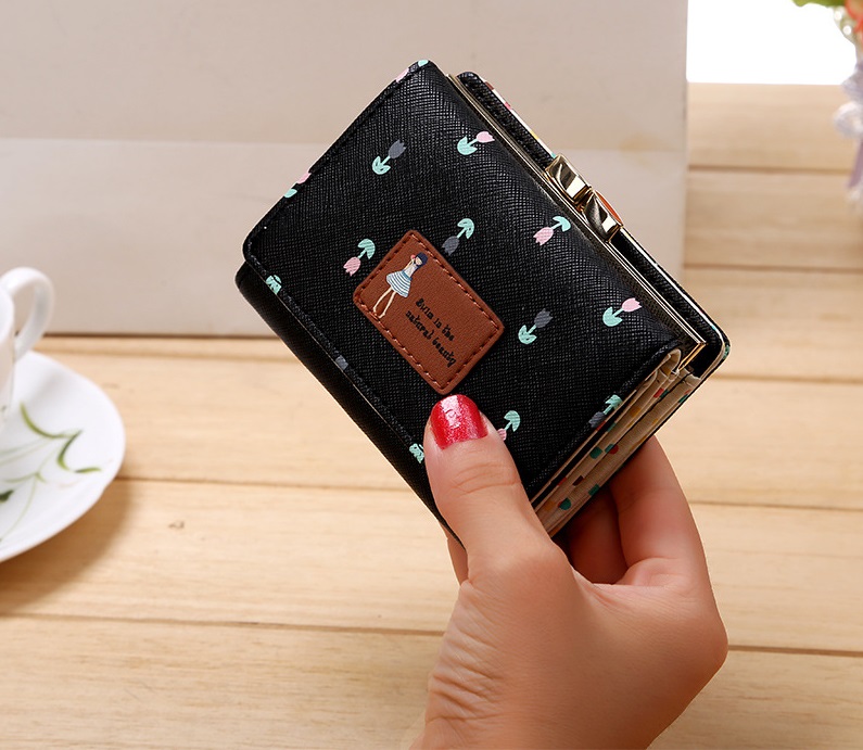 The internal structure of the small bag: card position, change position, banknote clip, photo position