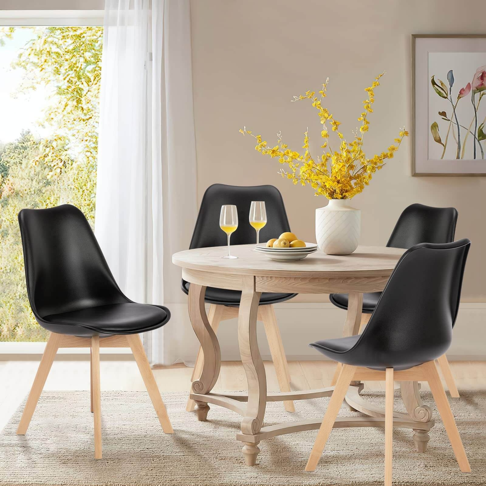 【Sturdy Base】 Constructed with four-point support, the 2.5 cm diameter chair legs are made of pure beech wood material which is hard and rot-resistant. The dining chair's maximum weight capacity is 275 pounds, and non-slip pads on the legs protect your floors from scratches.