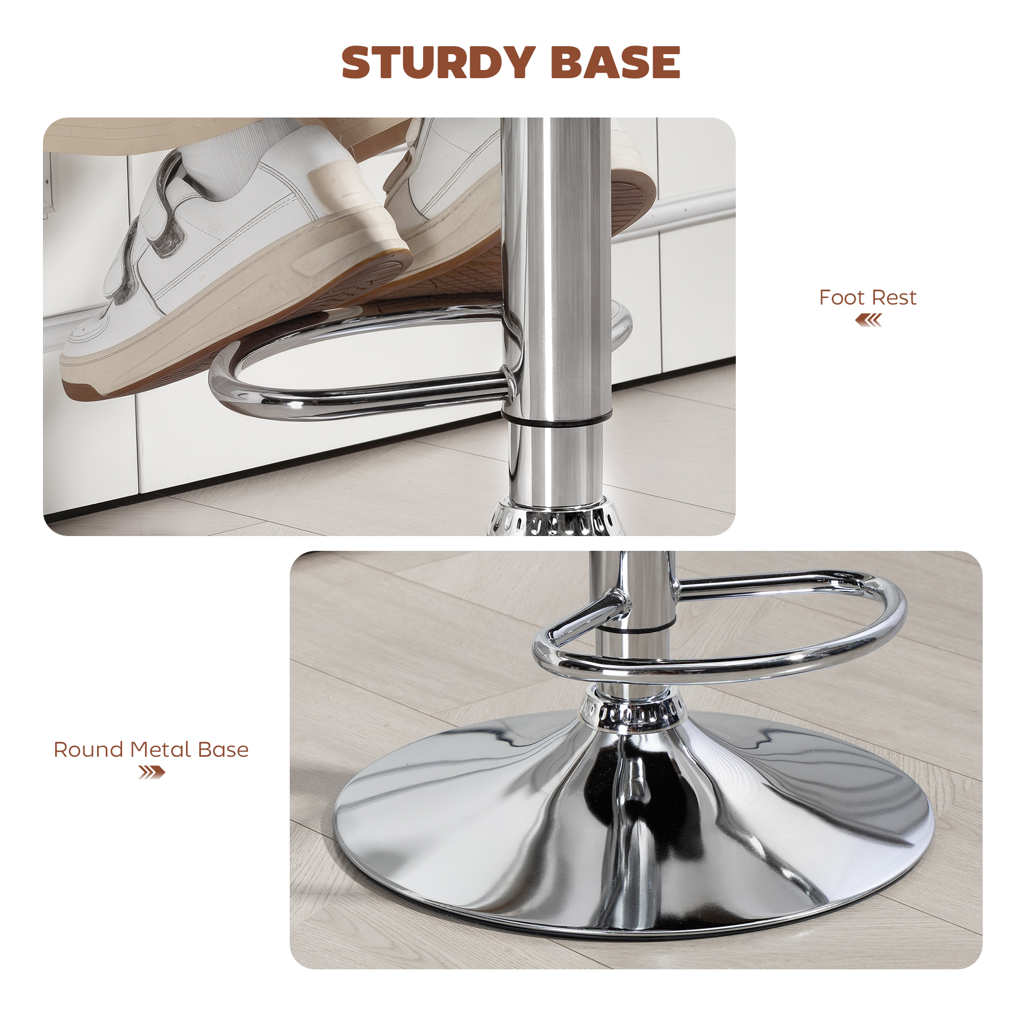 This adjustable stool comes with a full back support with a modern style, it is made with PU and a chrome base. The kitchen stools with backs can also be moved and adjusted in height and has a foot support for comfort, the bar stool has a stylish and modern feel with a comfortable seating position. It can be used in the kitchen with your breakfast bar, in the lounge and would suit any room decor.