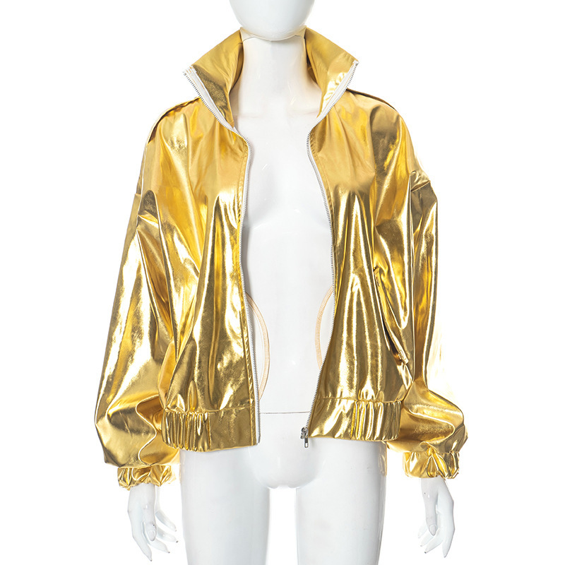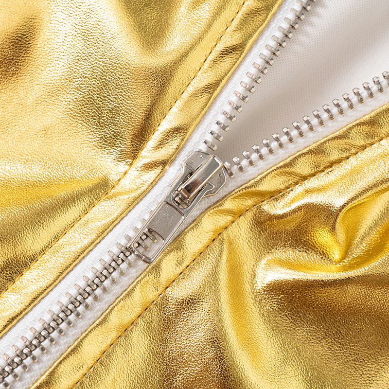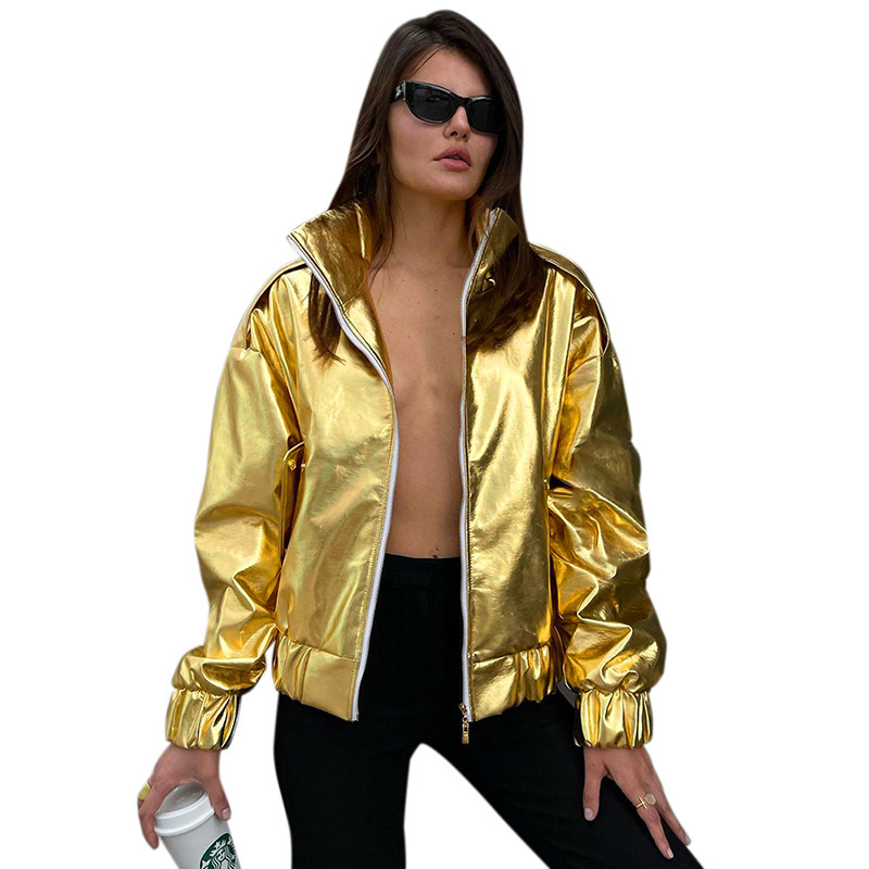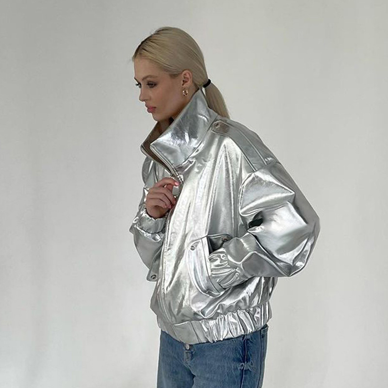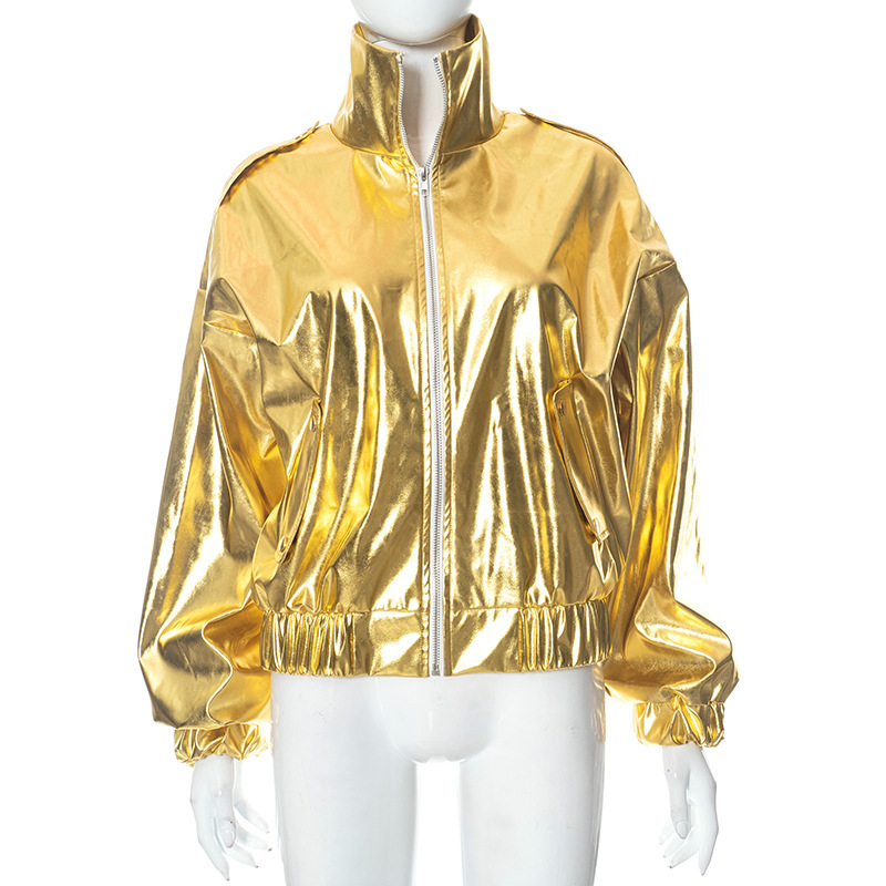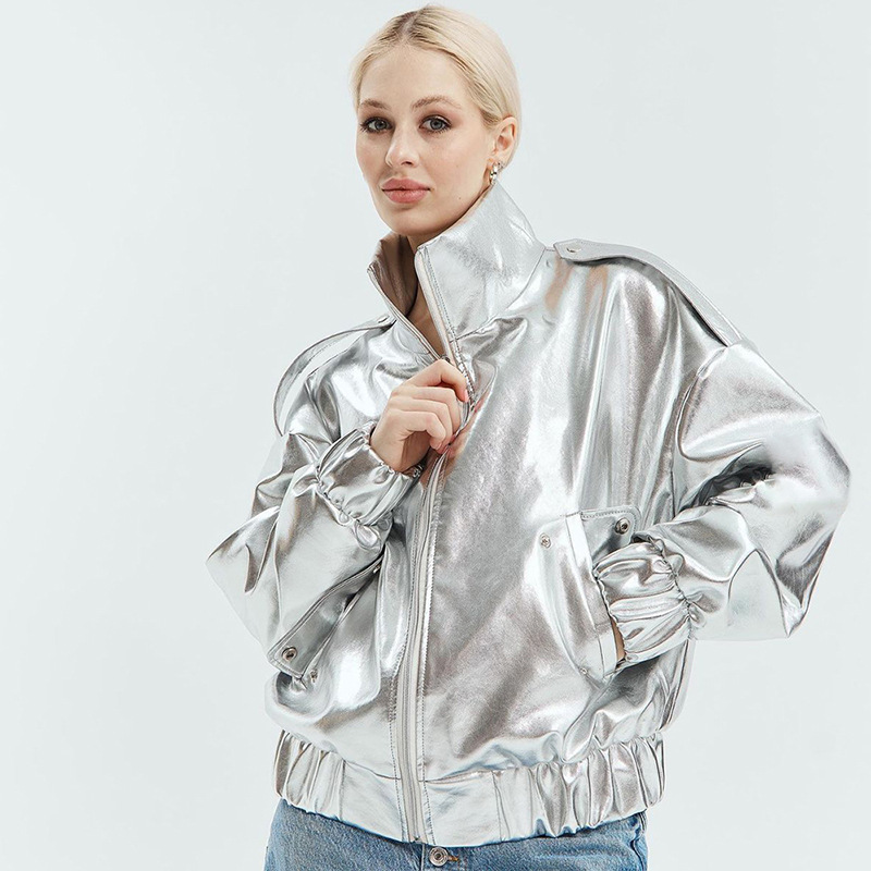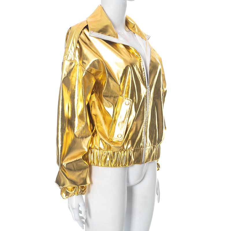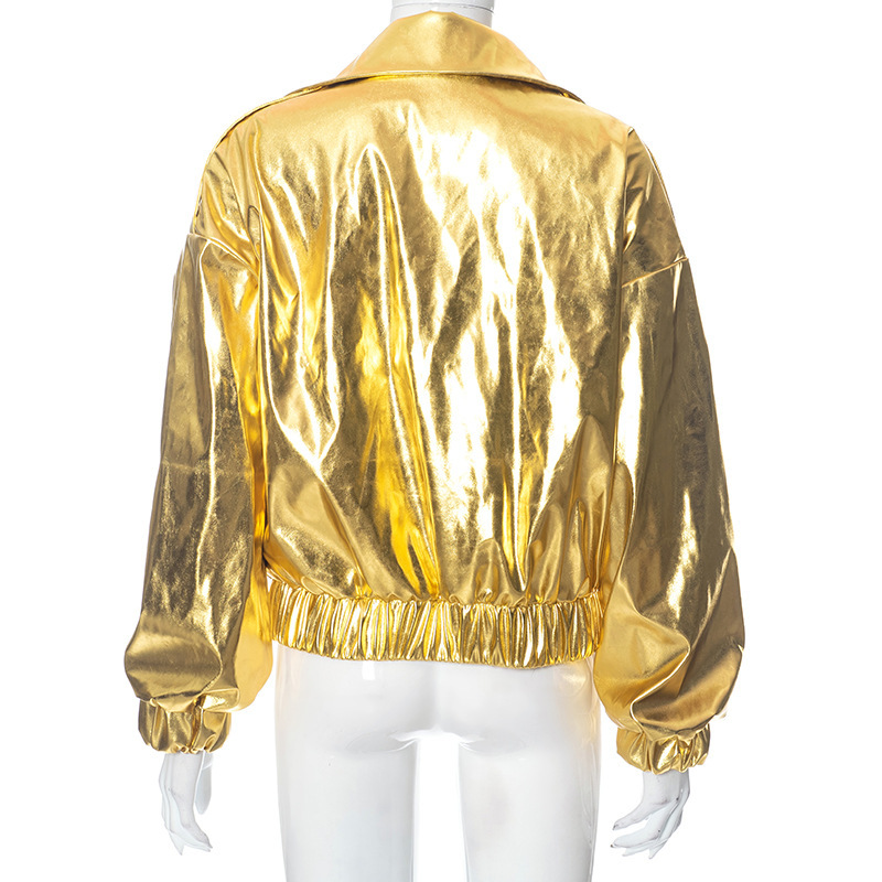 PU Metallic Zipper Fashion New Polo Collar Coat