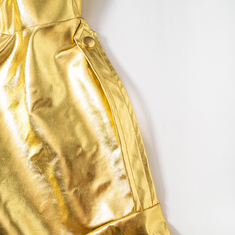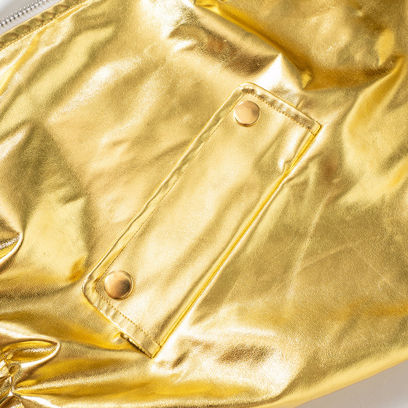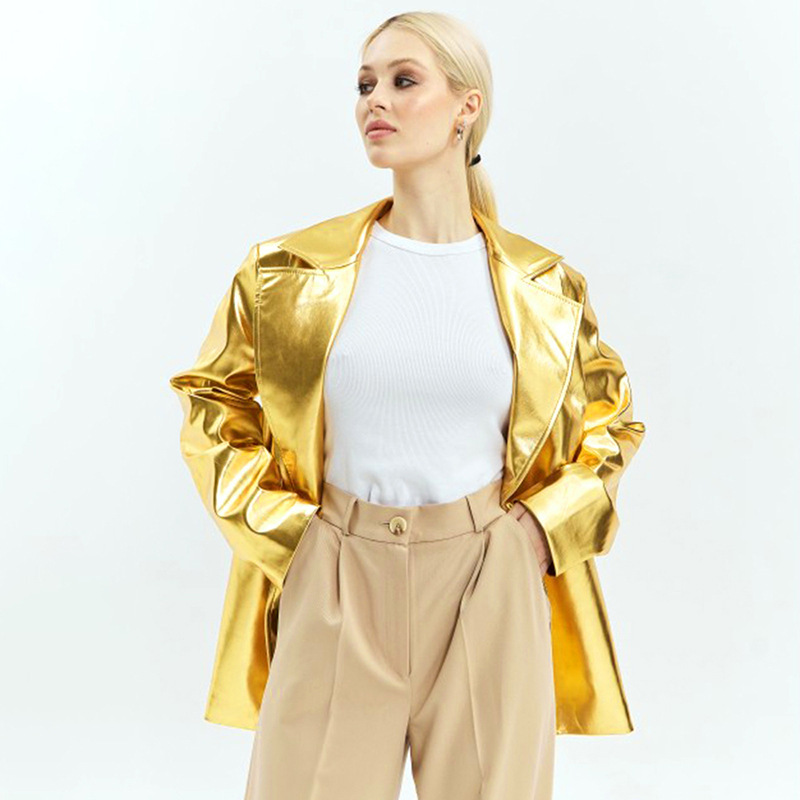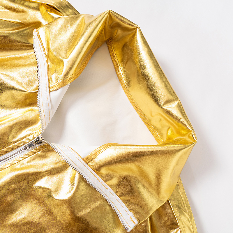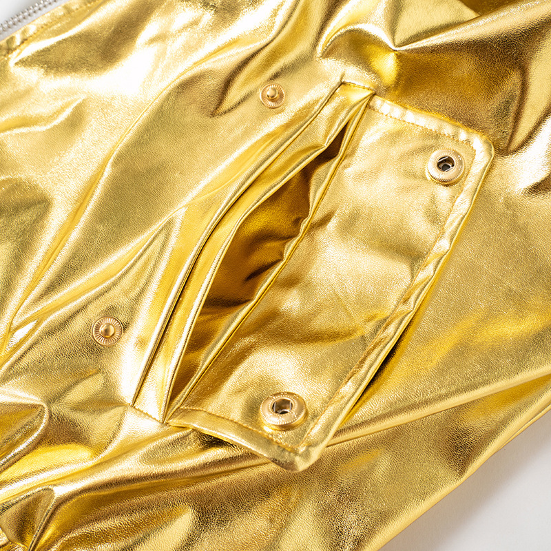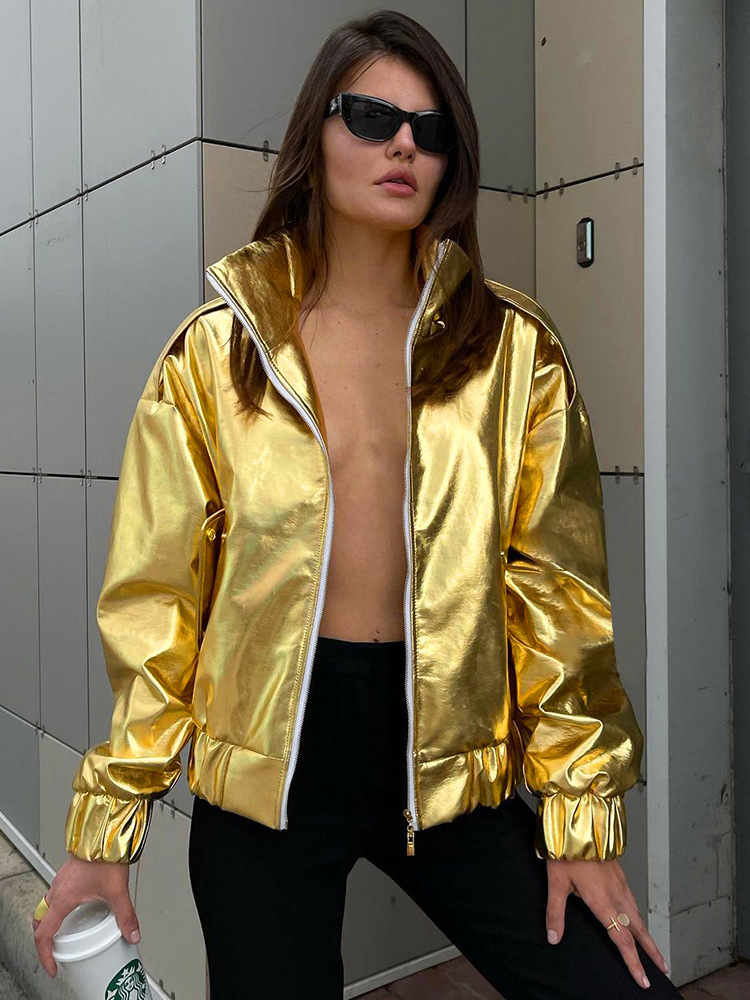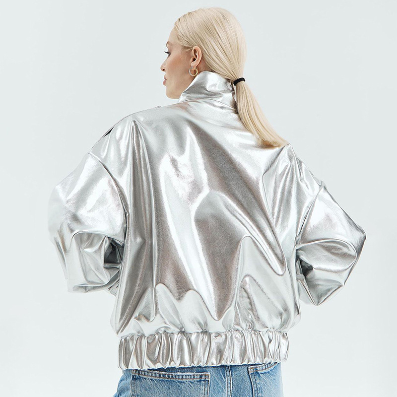 PU Metallic Zipper Fashion New Polo Collar Coat