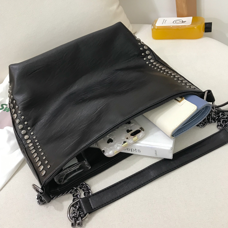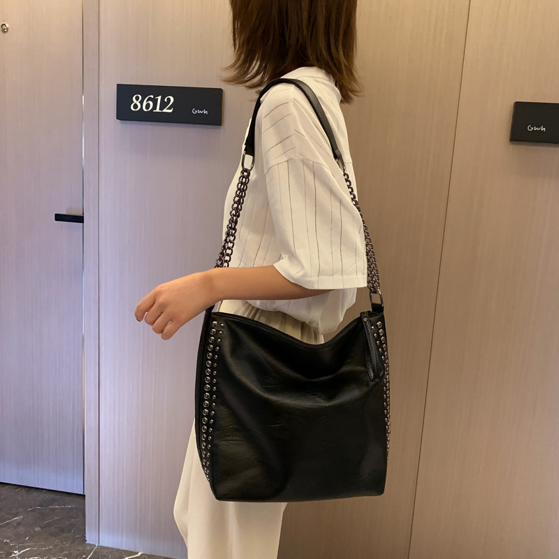PU Simple Casual Chain One Shoulder Rivet Backpack
