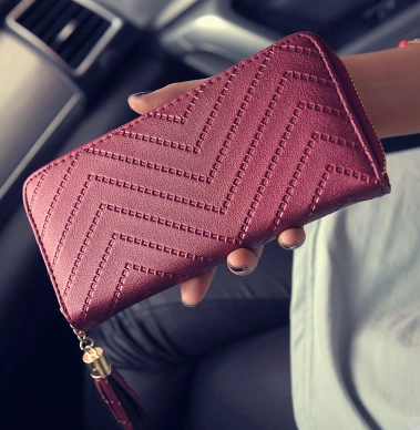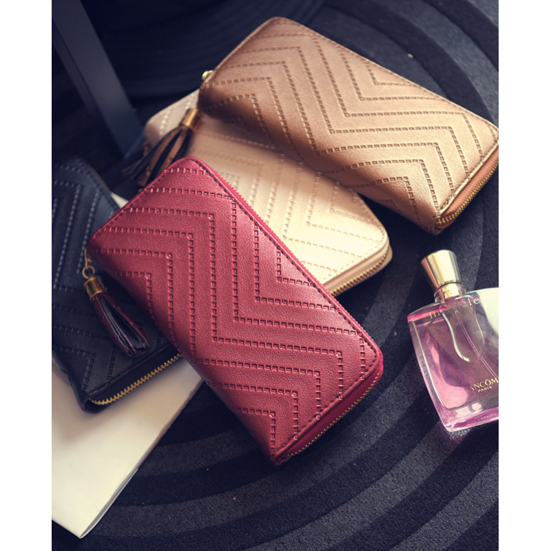 Pu small tassels 1 fold wallet trendy Korean fashion long wallet simple multi-card wallet