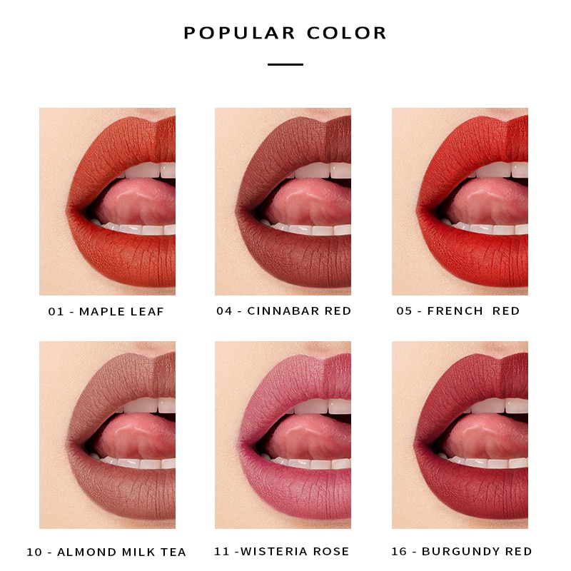 Color 1#Maple leaf red, 2#tomato red, 3# pumpkin color, 4# cinnabar red, 5# French red, 6# deep red, 7# goddess red, 8 #wine red, 9# rose red, 10# almond milk tea, 11# bean paste Color, 12# coral milk tea, 13# sweet orange red, 14# brick red, 15# mocha brown, 16# burgundy red