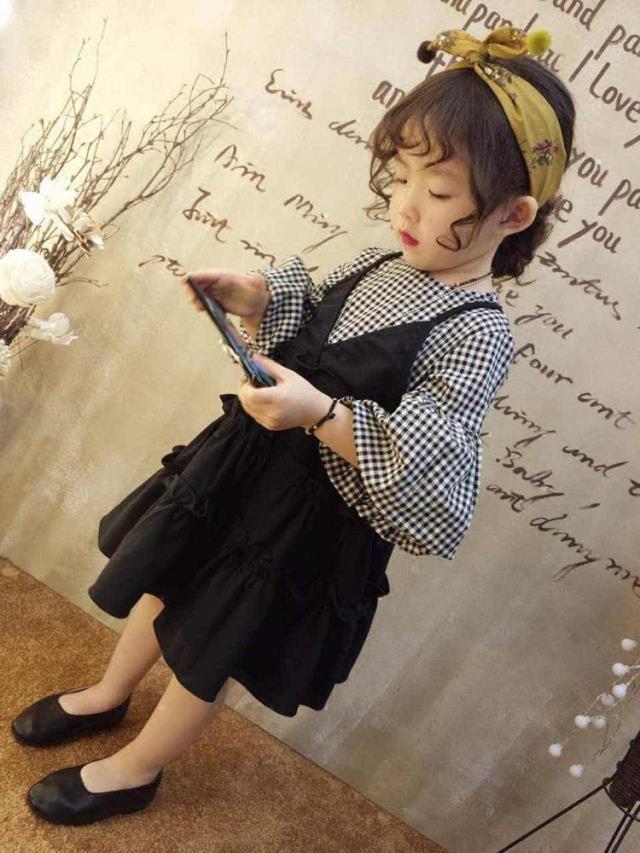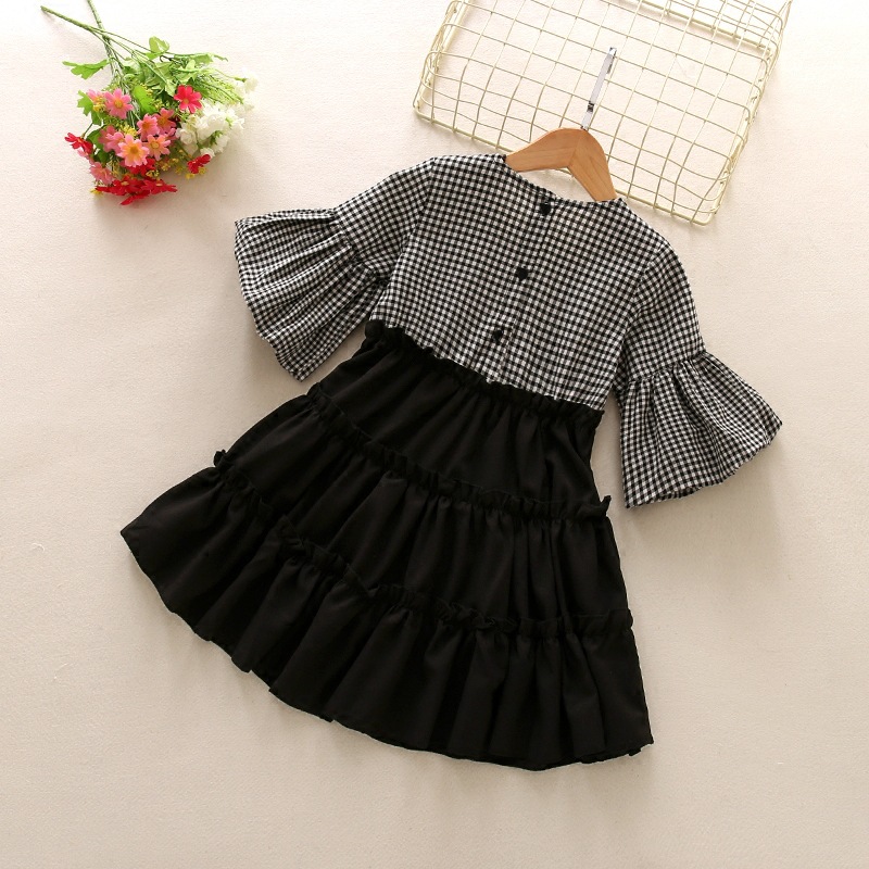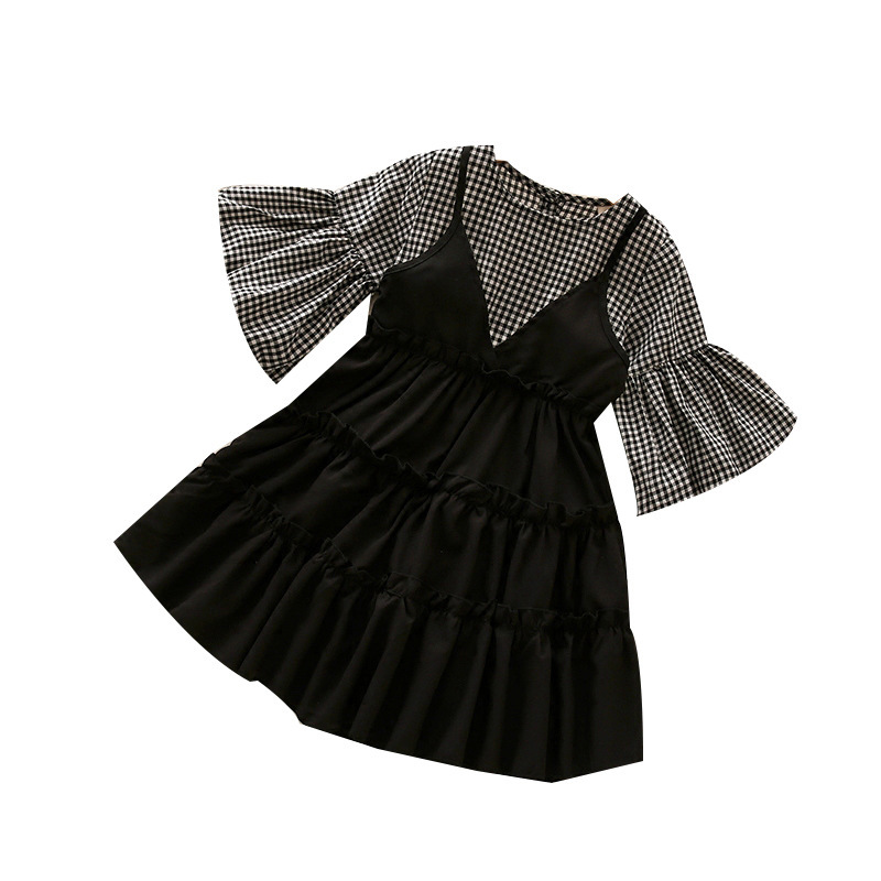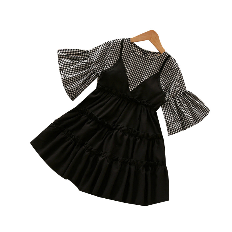 Puff Sleeve Plaid Stitching Fake Two-Piece Dress