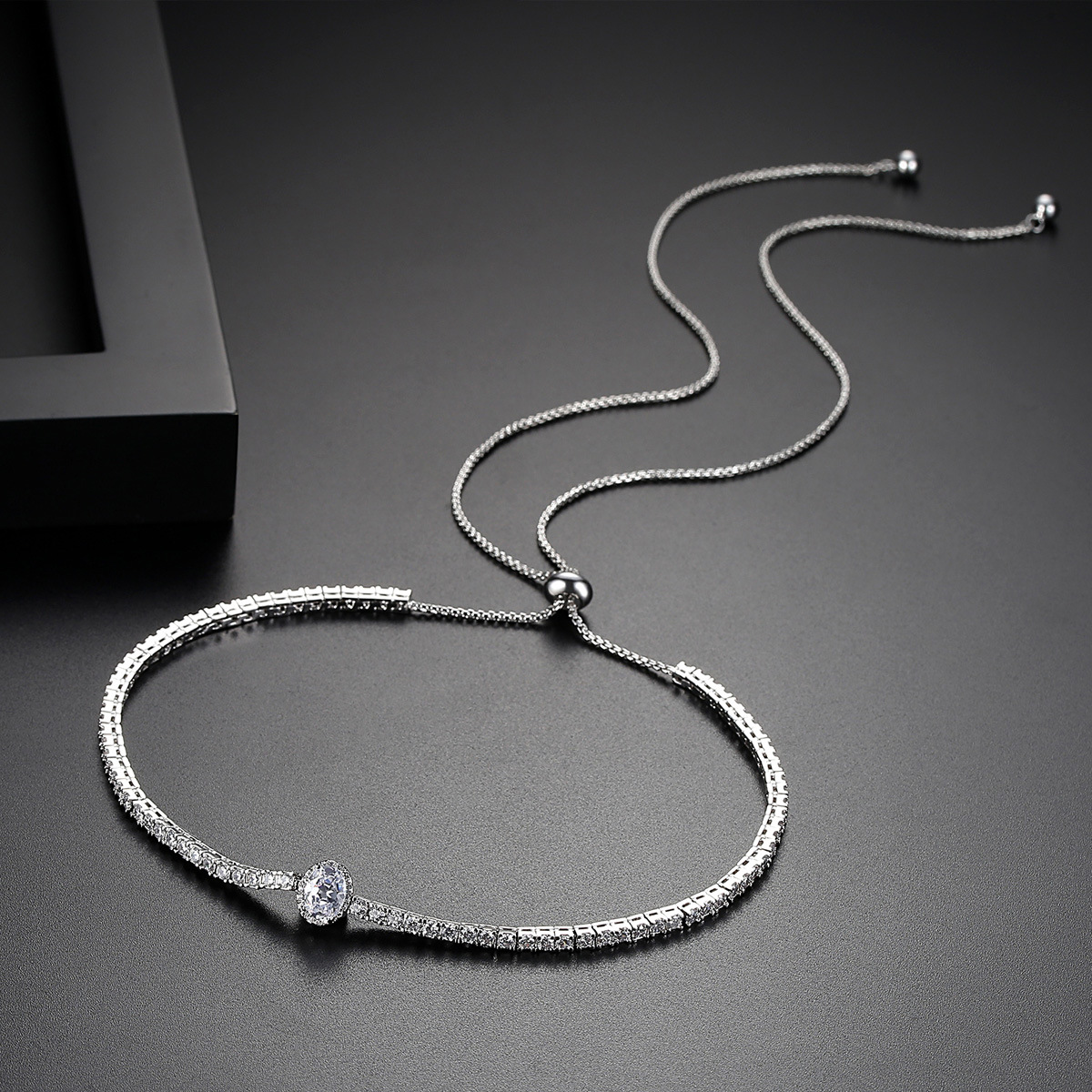 Pull-out Adjustable Copper Inlaid Zirconium Necklace Fashionable Korean Version Of The Card Neck