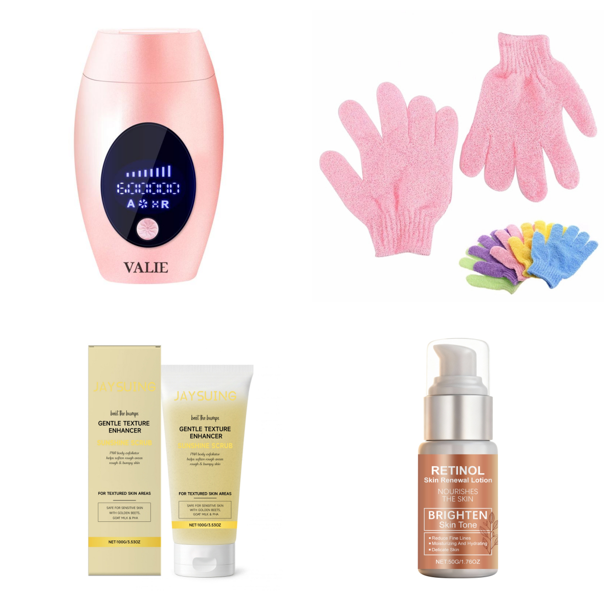 Essence milk *1+Scrubbing cream *1+gloves*2+Epilator*1