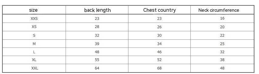 Size: XXS-38g,XS-50g,S-61g,M-82g,L-116g,XL-146g,XXL-207g