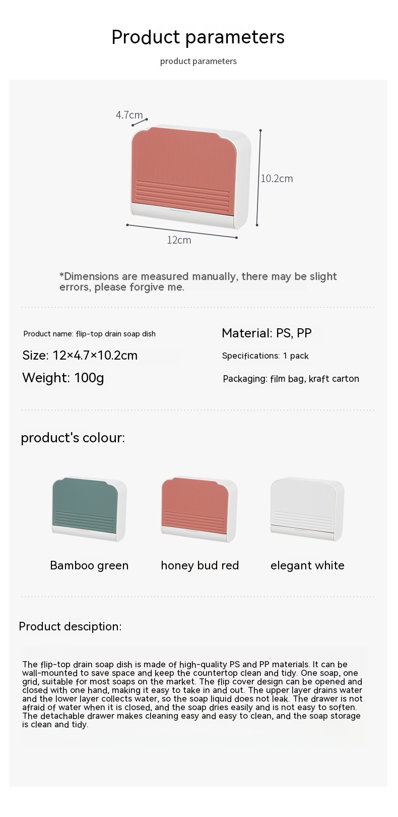 Specification: 12*4.7 * 10.2cm