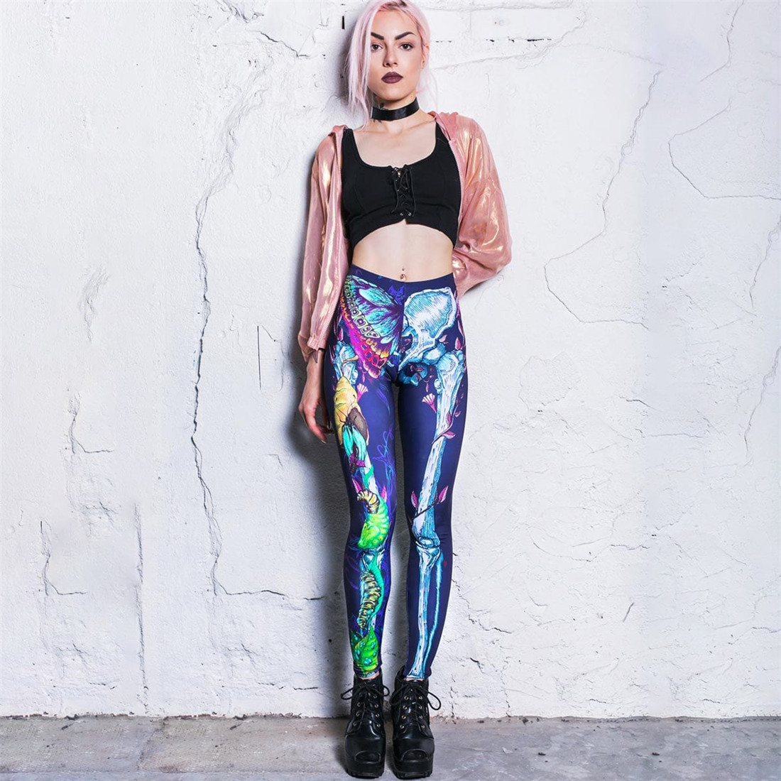 Punk Butterfly Skull Digital Printing Cropped Pants