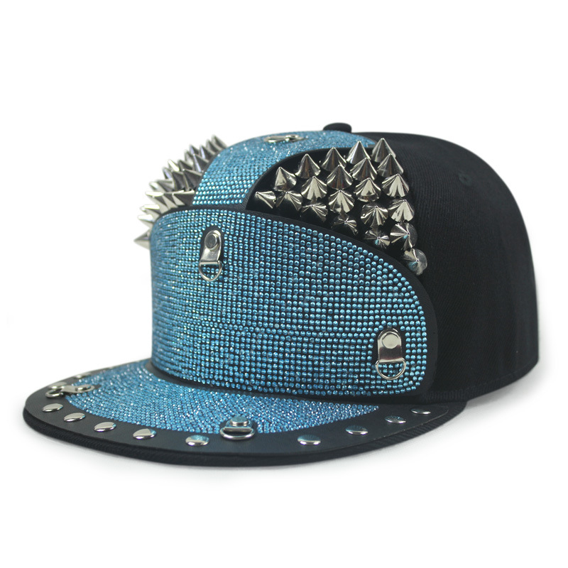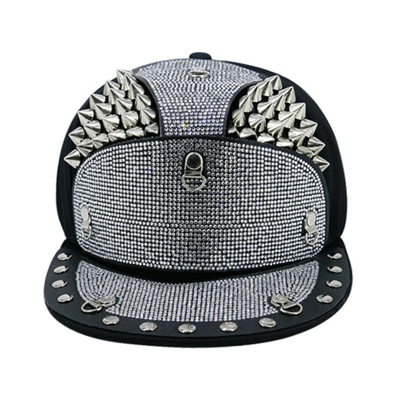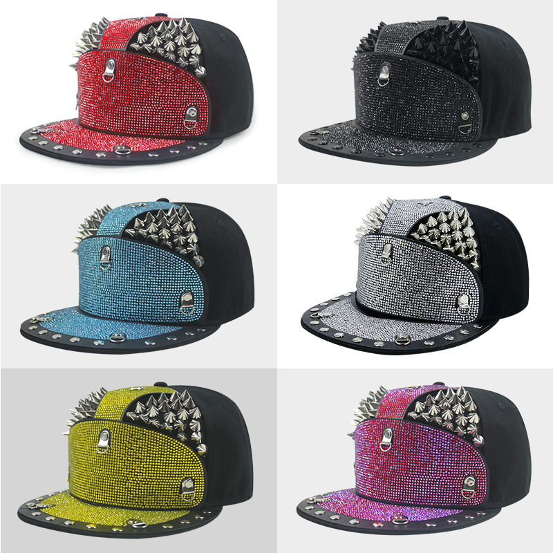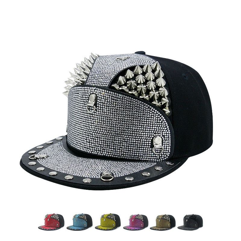 Punk Diamond Armor Tip Rivet Hip Hop Flat Brim Hat