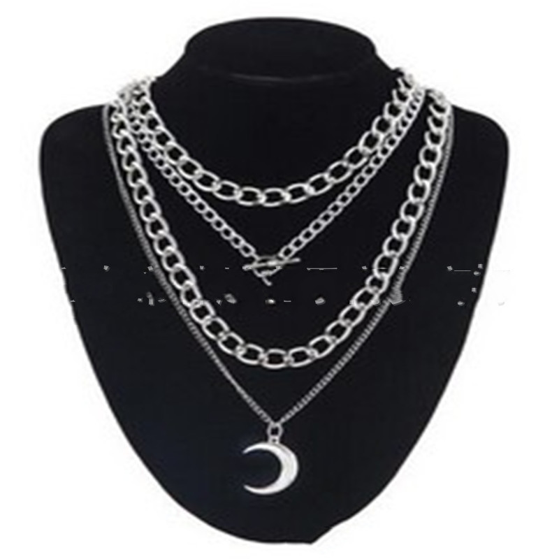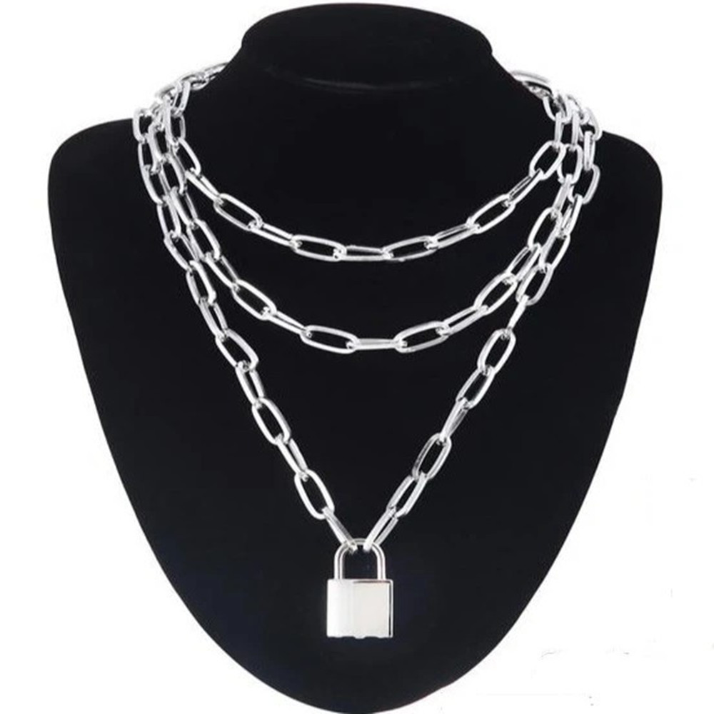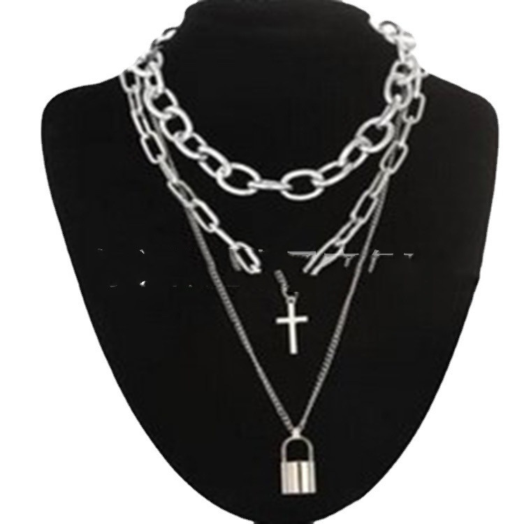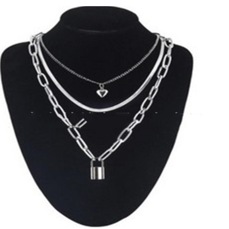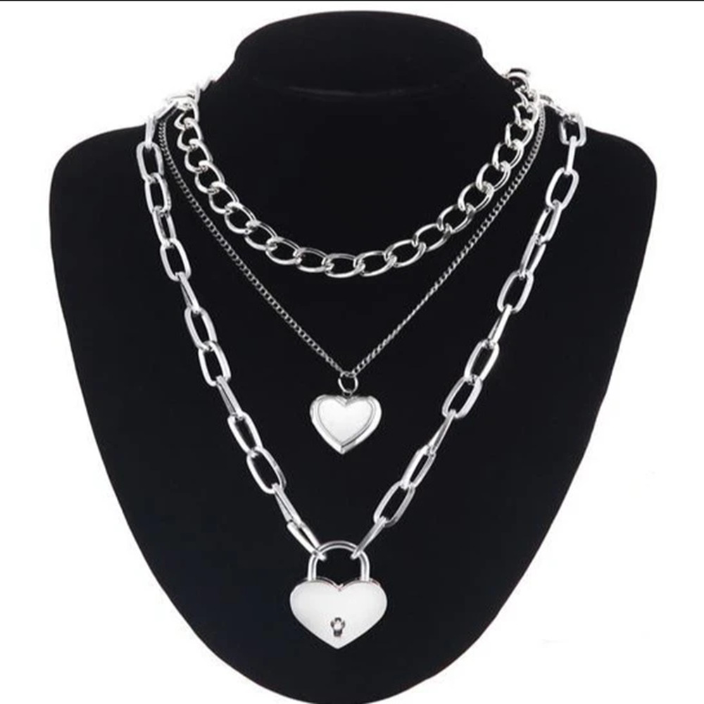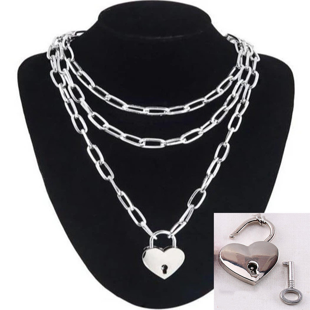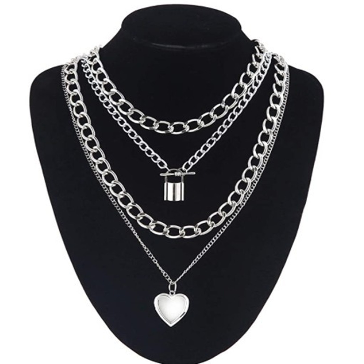 Punk Hip-hop Multi-layer Metal Chain Can Peach Heart Lock Necklace Sweater Chain