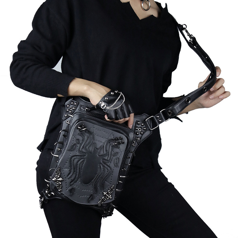 Punk Spider Rivet Multifunctional Men's Sports Outdoor Leg Bag Waist Bag