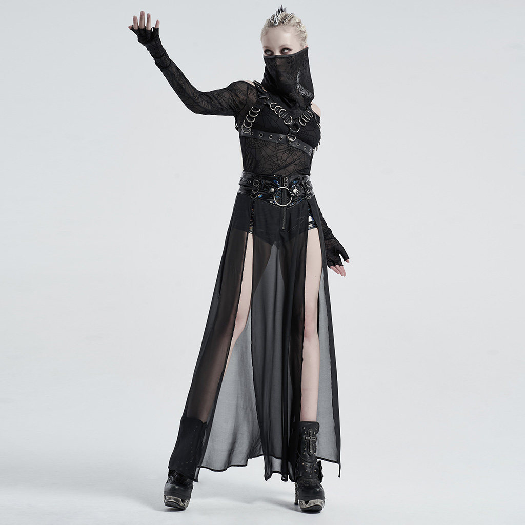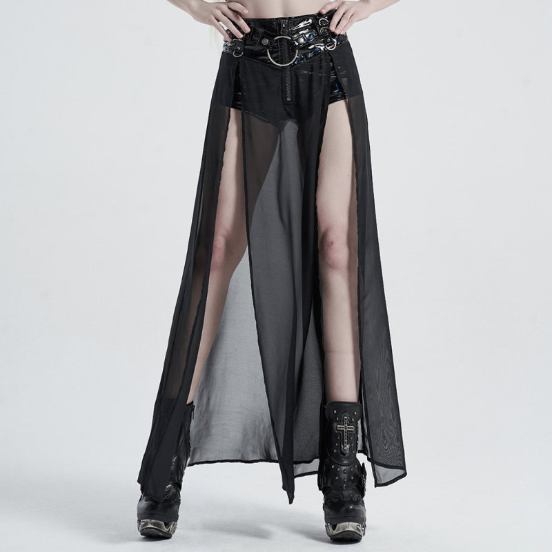 Punk-style Black Mesh Patchwork Faux Two-piece Skirt