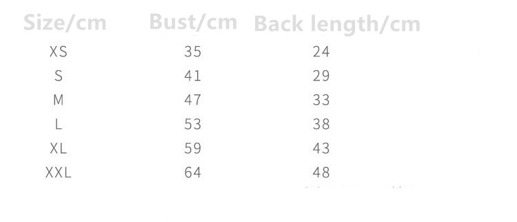 Size: XS (about 4 kg), S (about 6 kg), M (about 9 kg), L (about 11 kg), XL (about 16 kg), 2XL (about 18 kg)