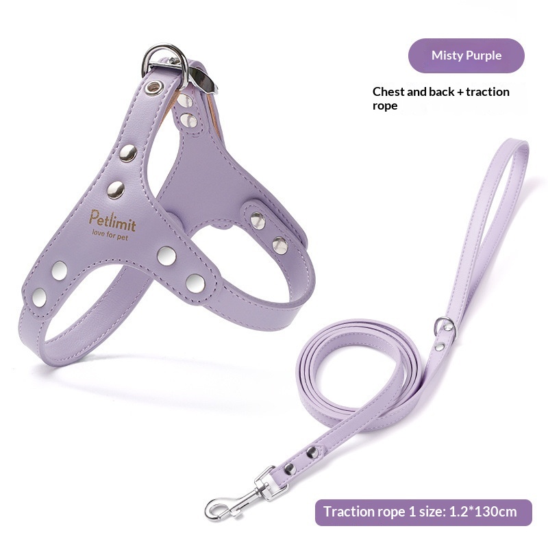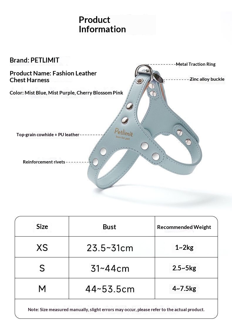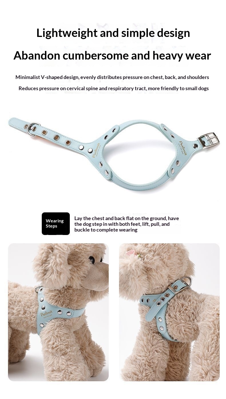 Puppy Leash And Leather Chest Harness For Small Dogs