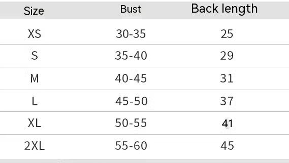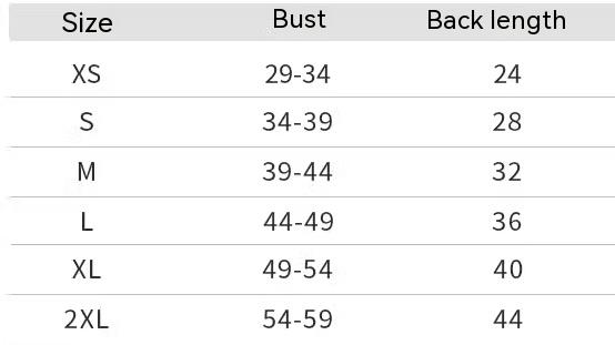 Size: XS: Bust 34cm Recommended weight 1-3 kg, S: Bust 39cm Recommended weight 3-5 kg, M: Bust 44cm