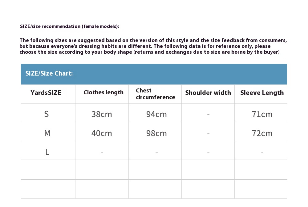 Note: 1. Asian sizes are 1 to 2 sizes smaller than European and American people. Choose the larger size if your size between two sizes. Please allow 2-3cm differences due to manual measurement. 2. Please check the size chart carefully before you buy the item, if you don't know how to choose size, please contact our customer service. 3.As you know, the different computers display colors differently, the color of the actual item may vary slightly from the following images.