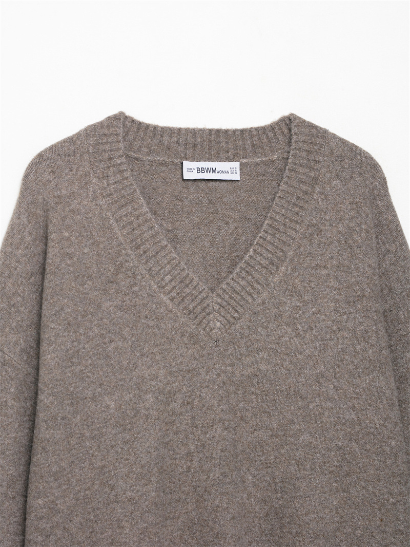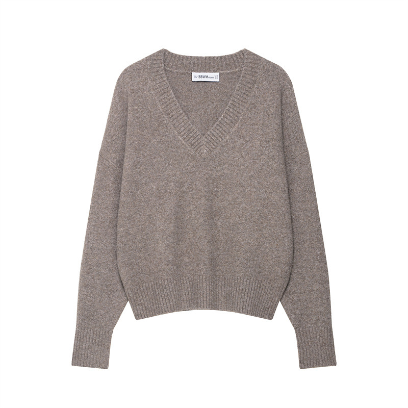 Pure And Alluring Sweater Womens AutumnWinter Long-Sleeve Soft V-Neck Knit Top