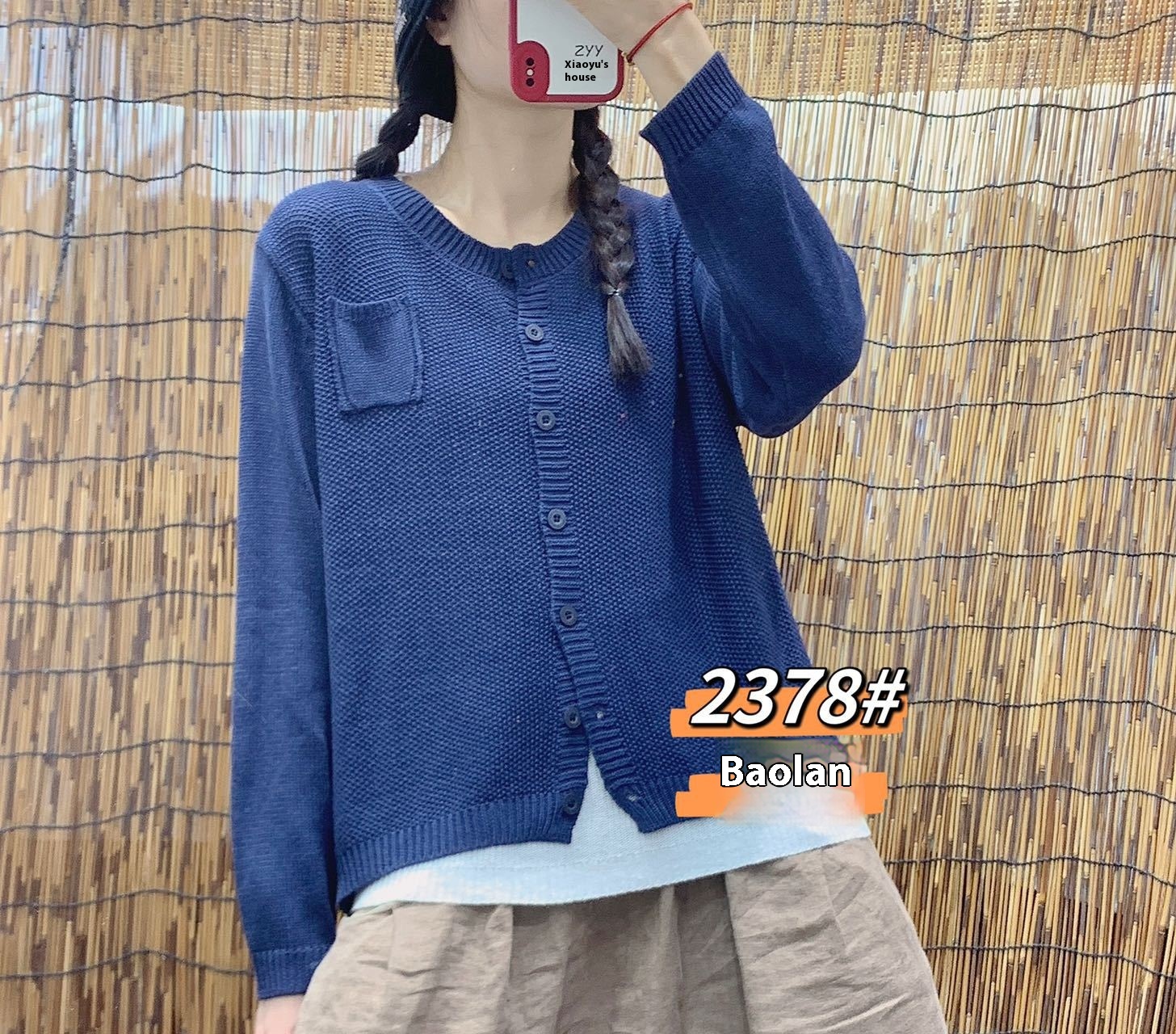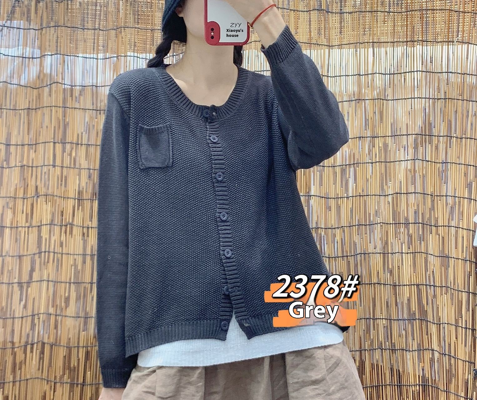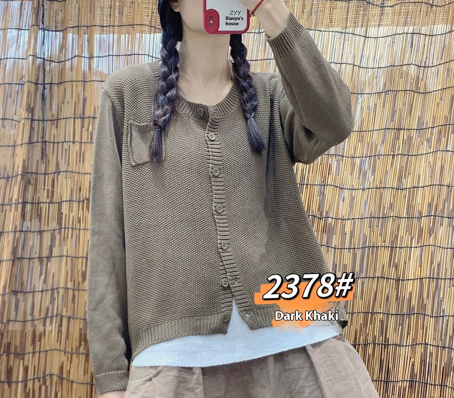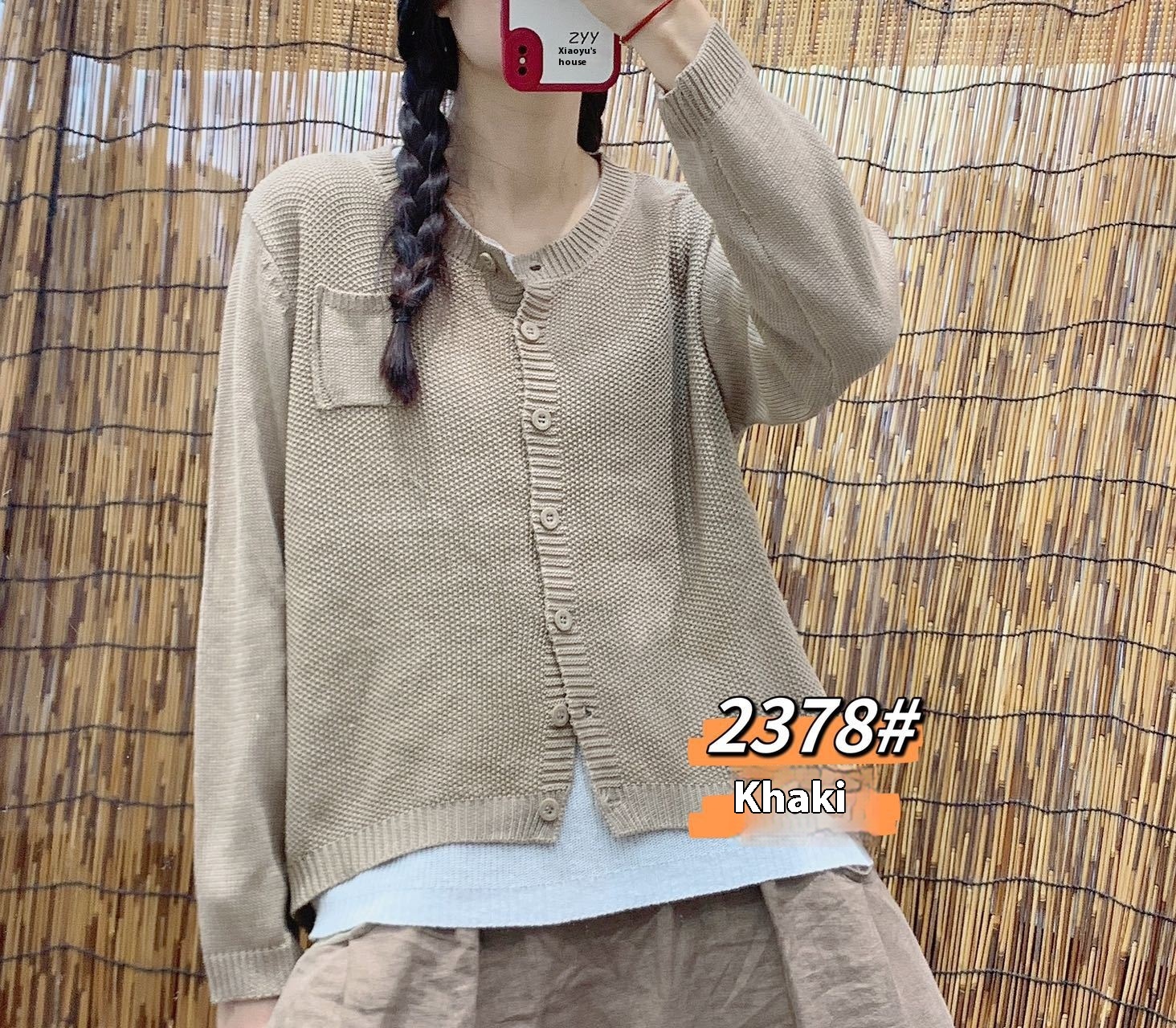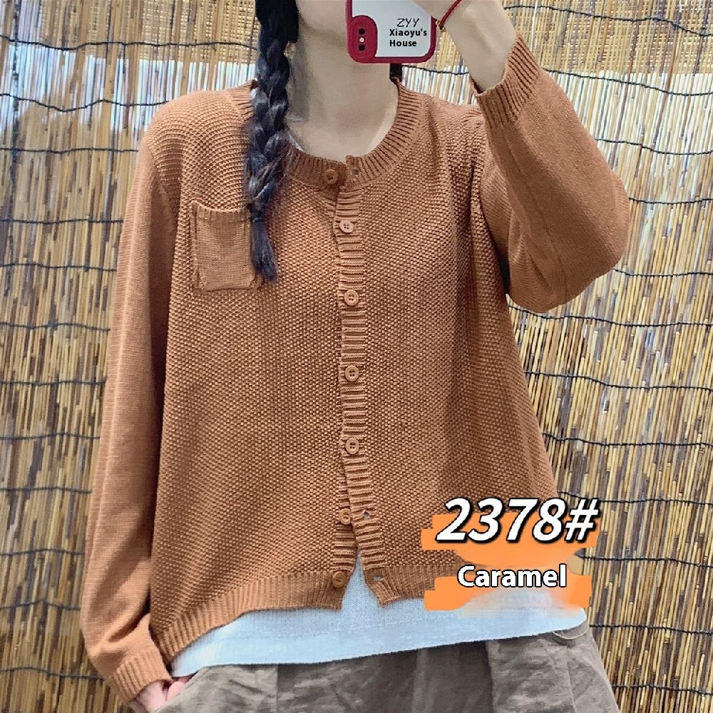 Pure Color Artistic Retro Loose Cardigan Sweater Women