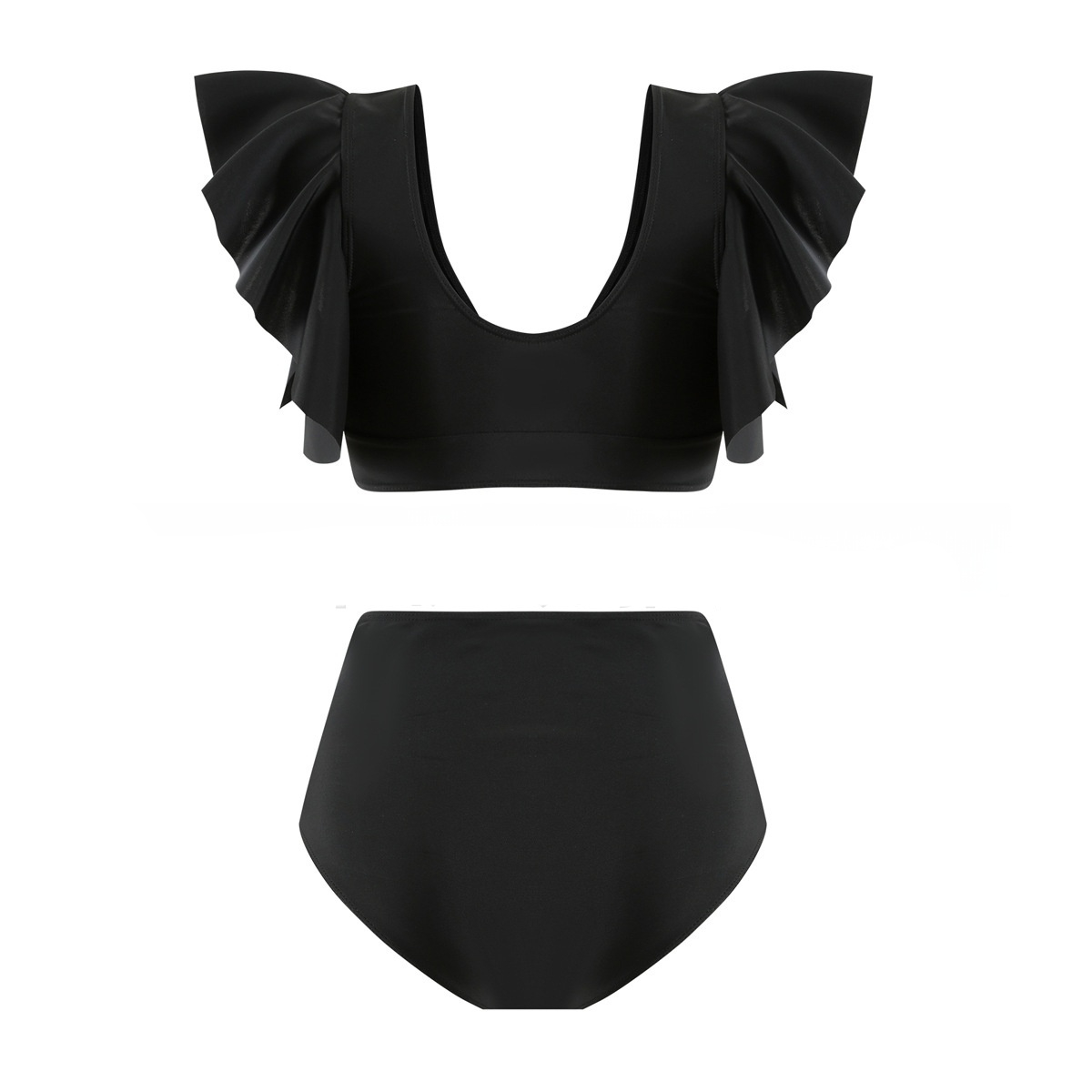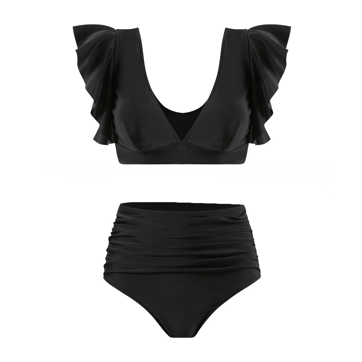 Pure Color Bikini Ruffled Amazon Sexy High Waist Split Ladies Ratio