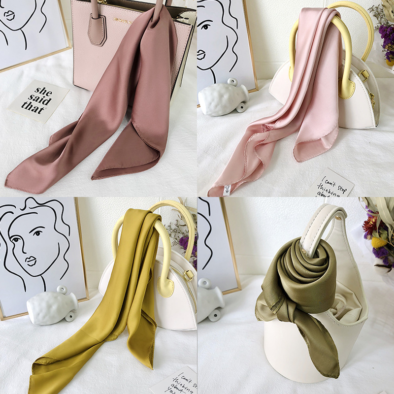 Material: artificial silkLength (CM): 53cmWeaving method: plain weavePattern: MonochromeFunction: DecorationStyle: small square scarf