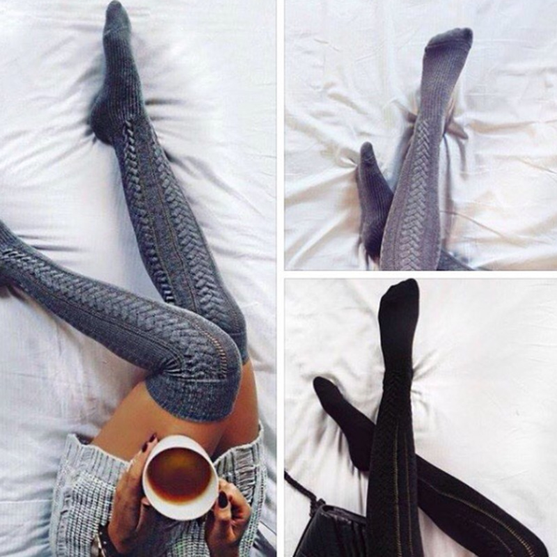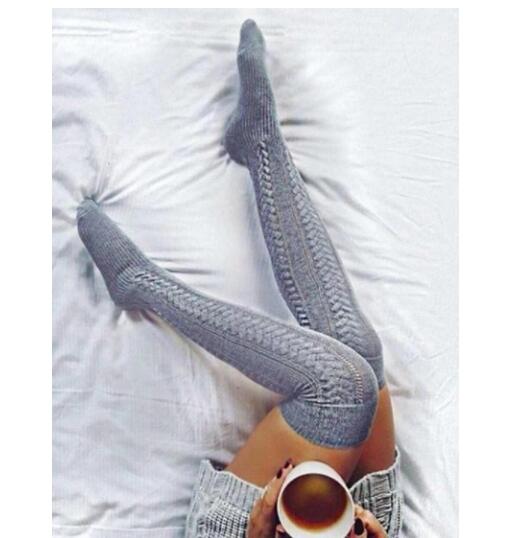 Pure Color Long Tube Over The Knee Pile Pile Socks