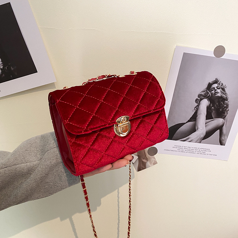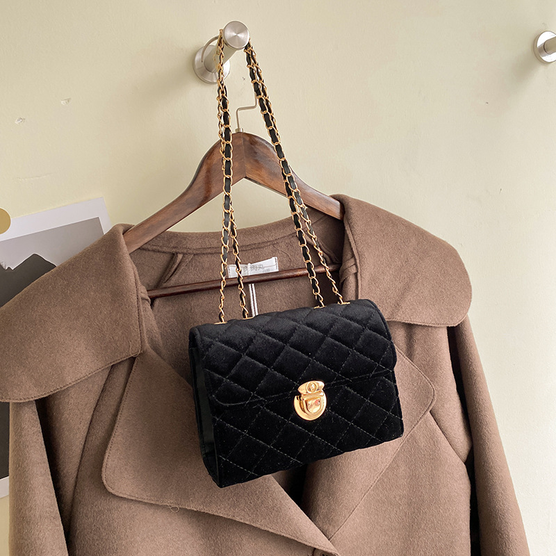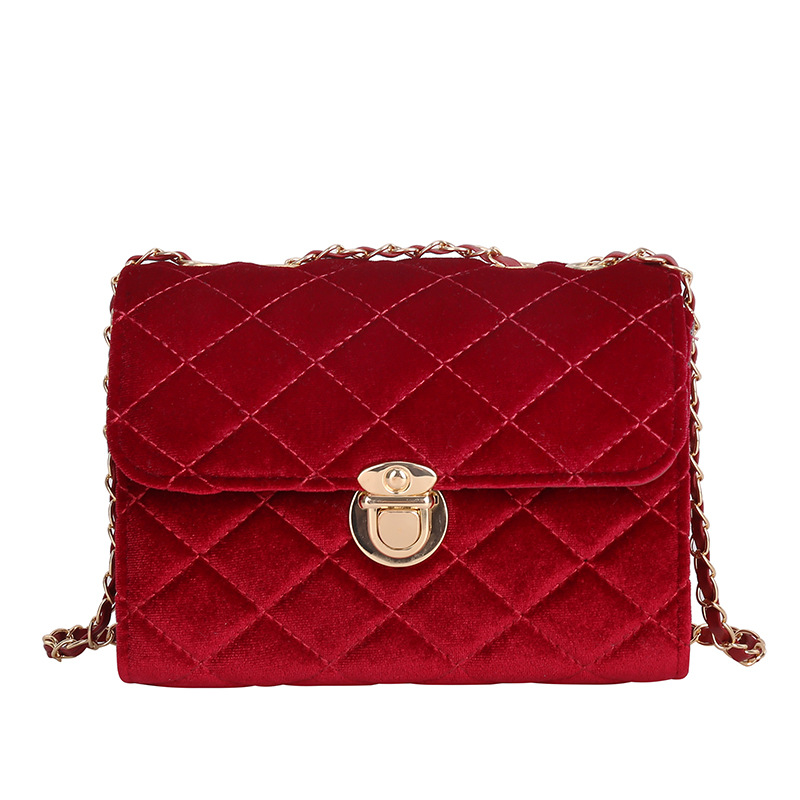 Pure Color Texture Diamond Chain Shoulder Bag