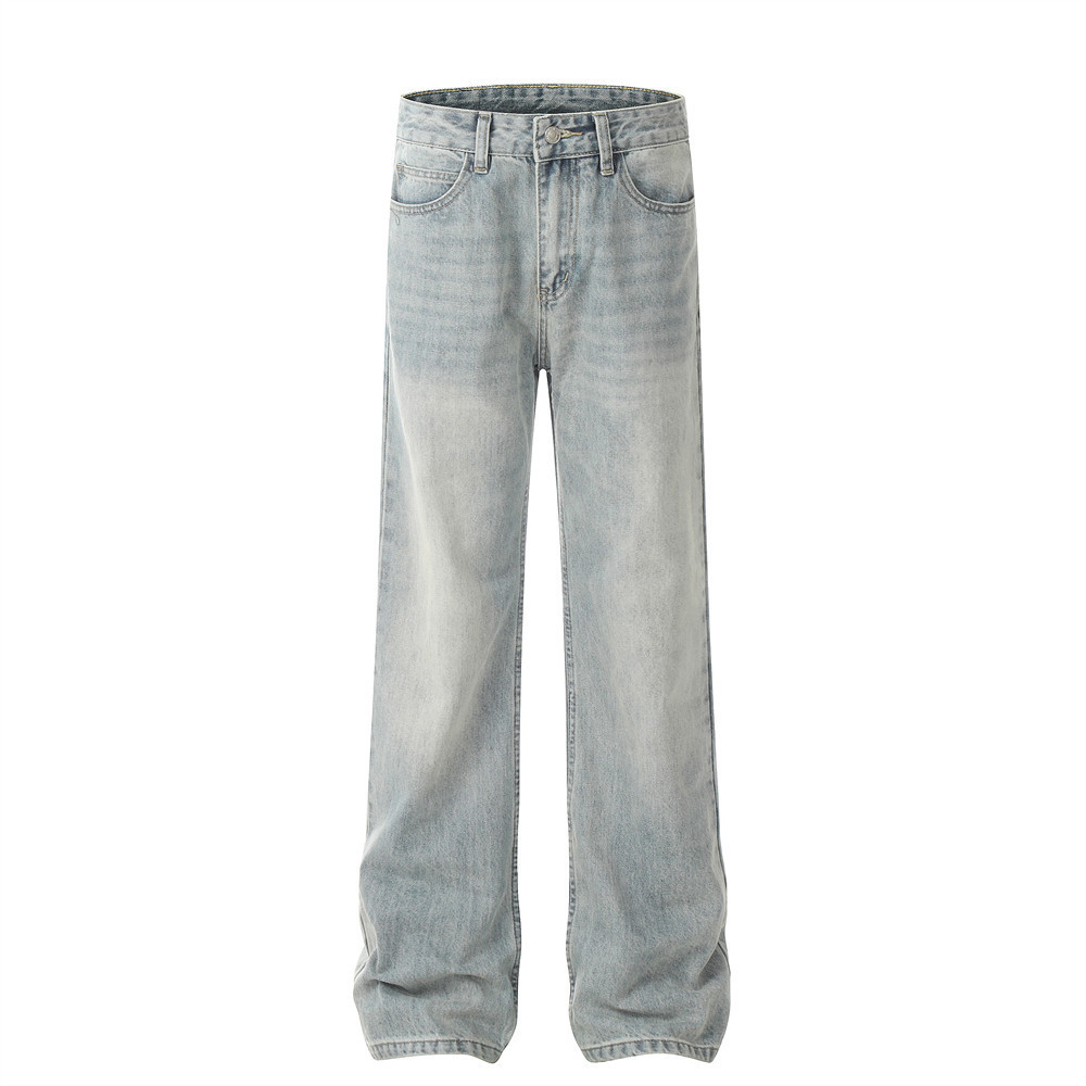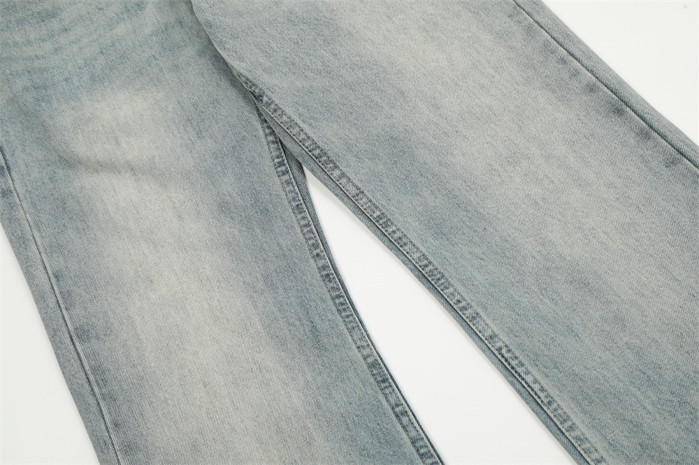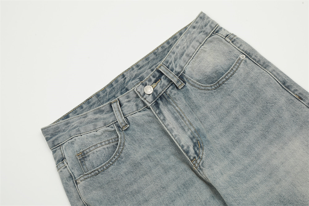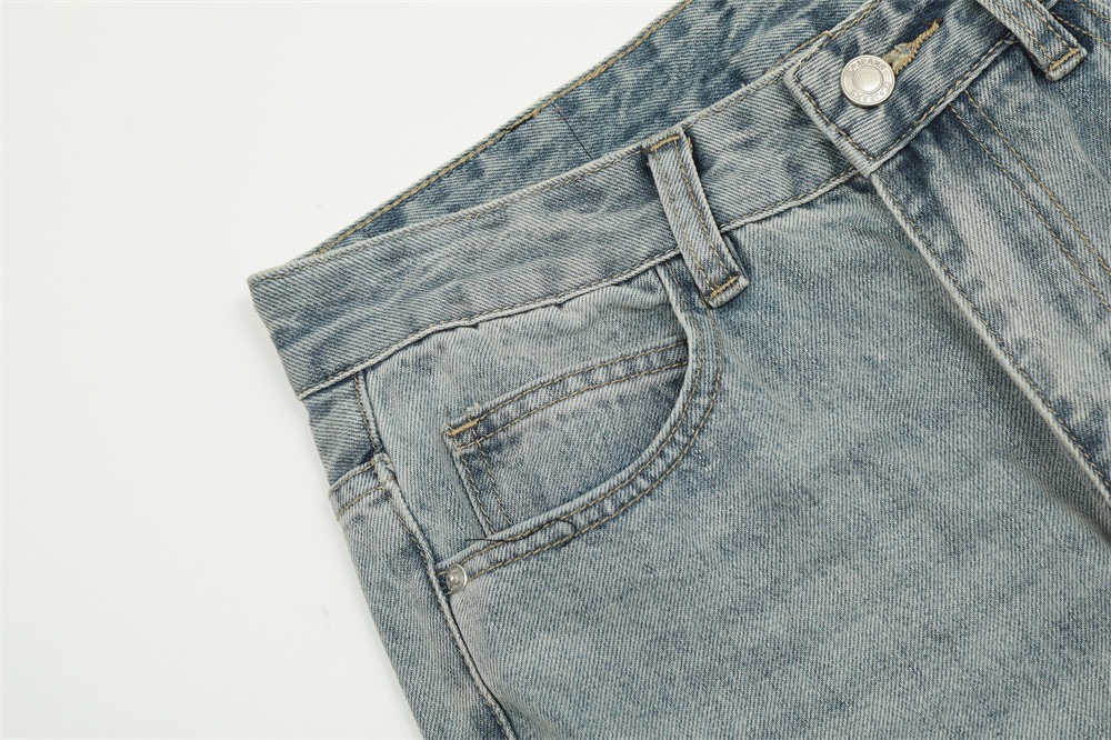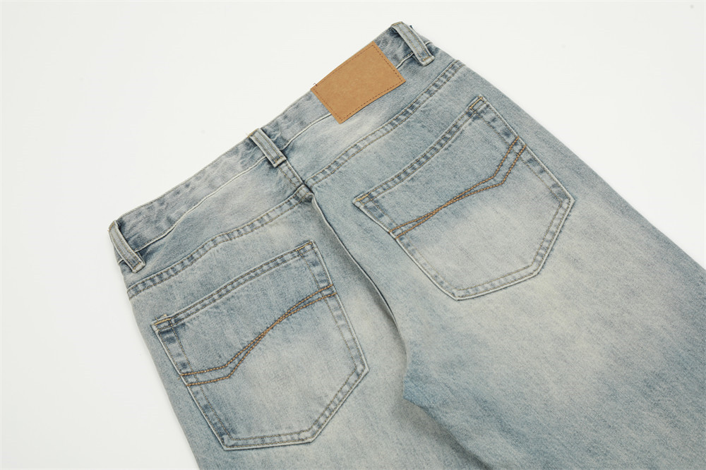 Pure Color Washed Distressed Straight Jeans