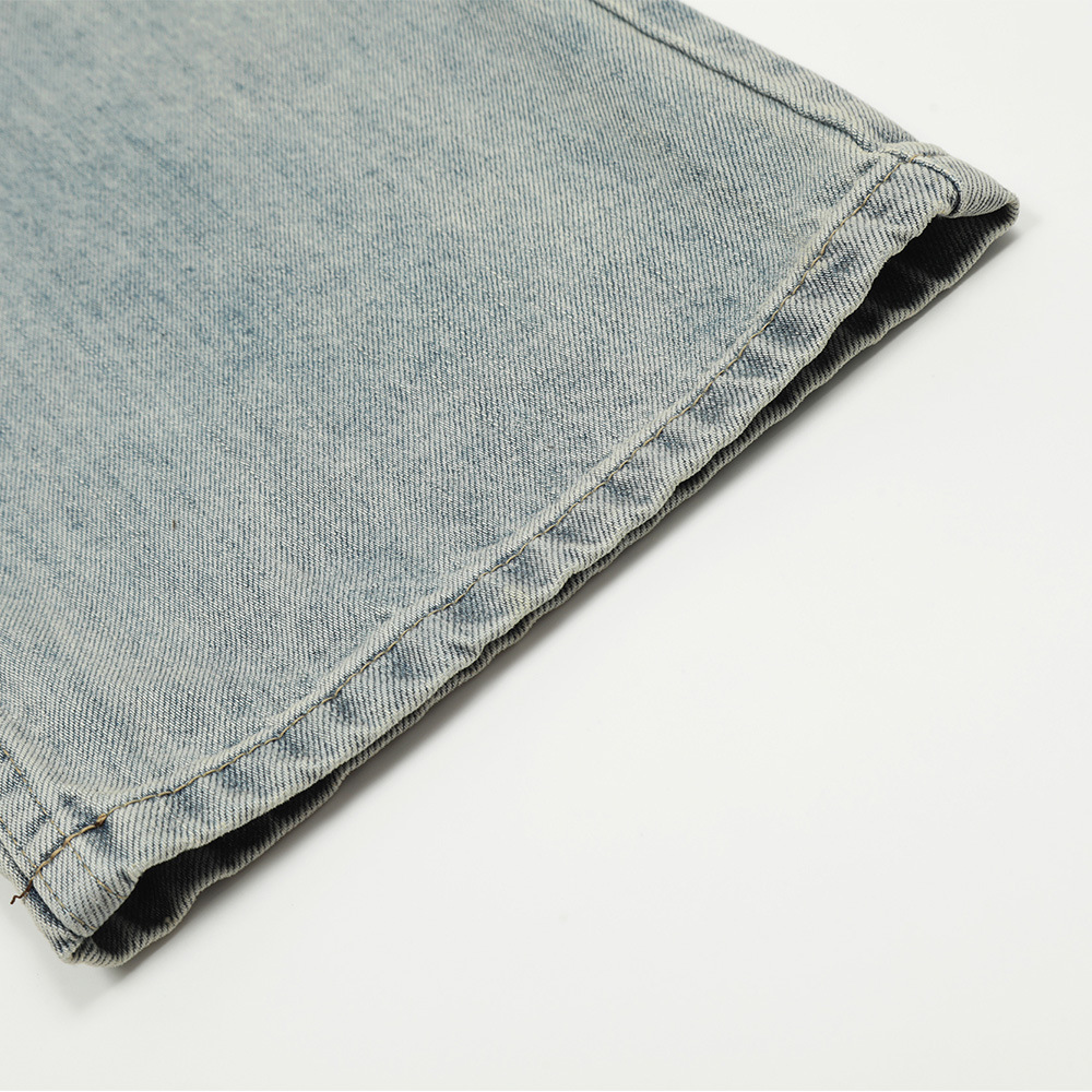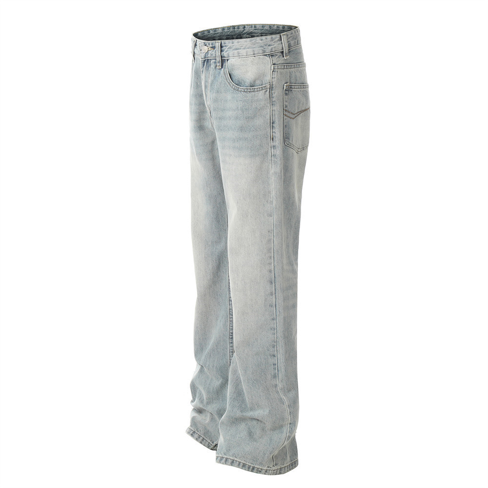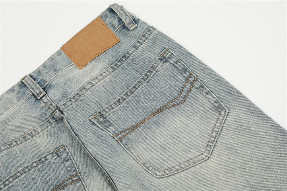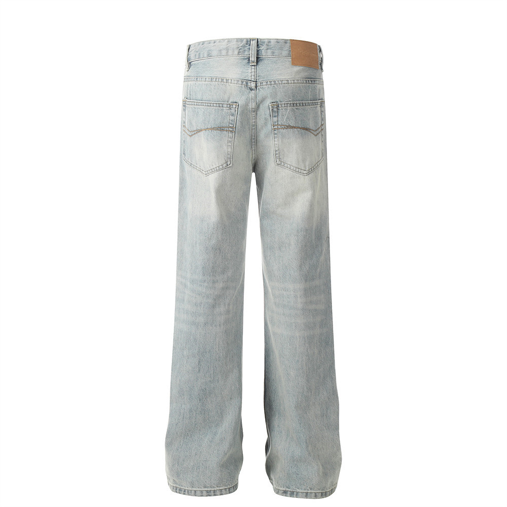 Pure Color Washed Distressed Straight Jeans