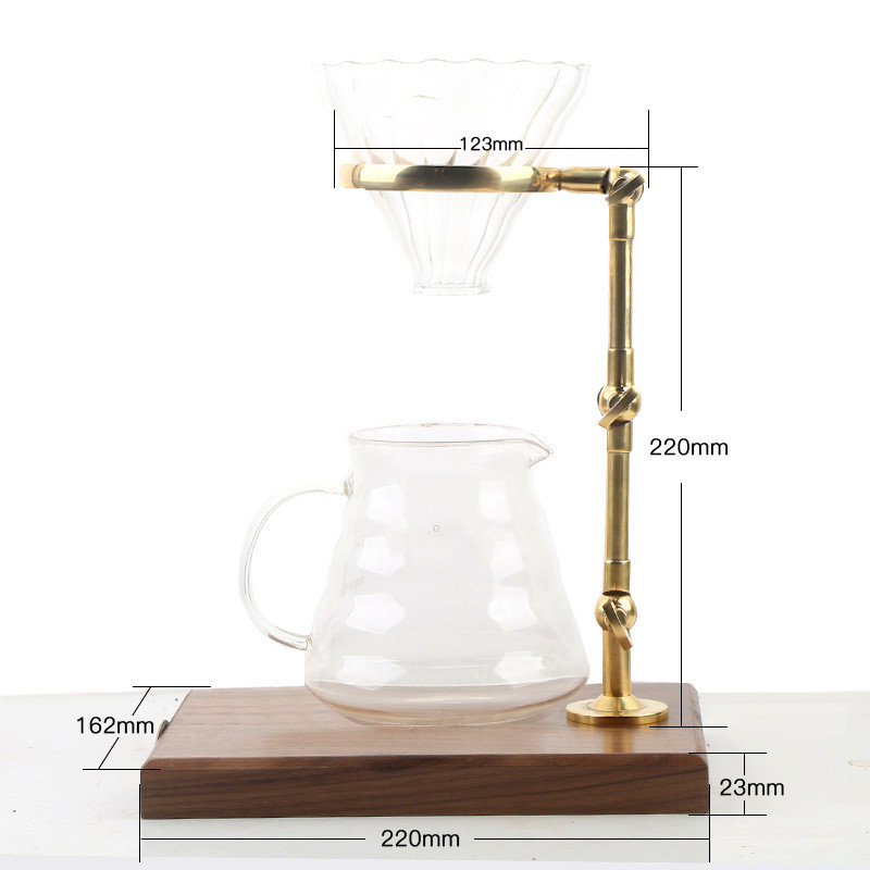 Pure Copper Coffee Pour-over Mount Wooden Base Adjustable Height
